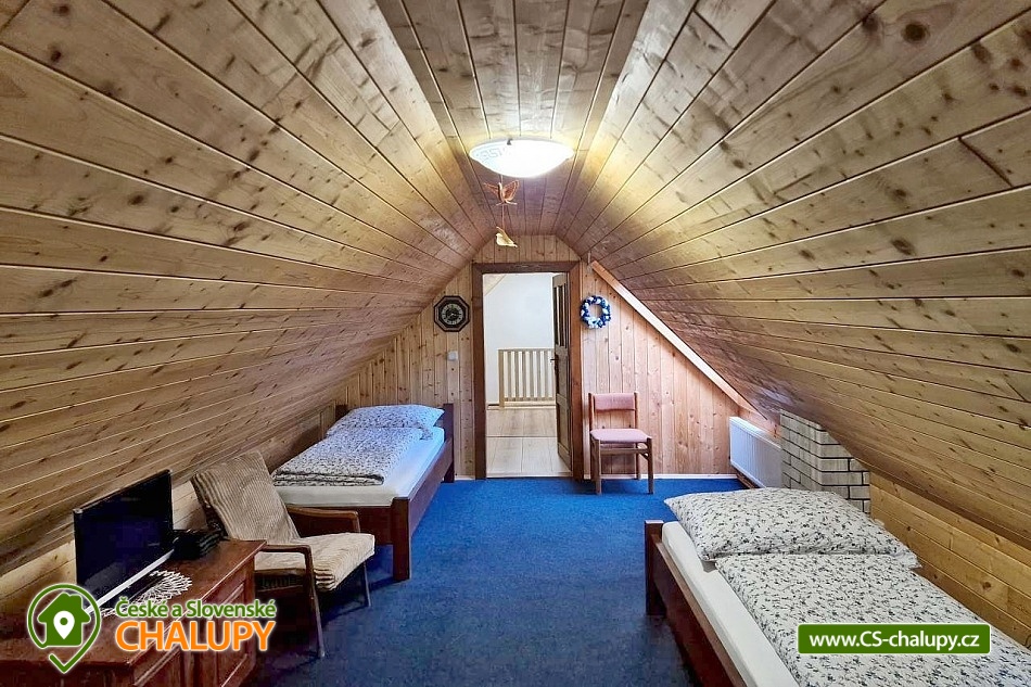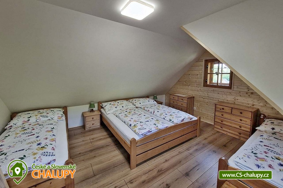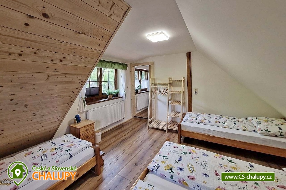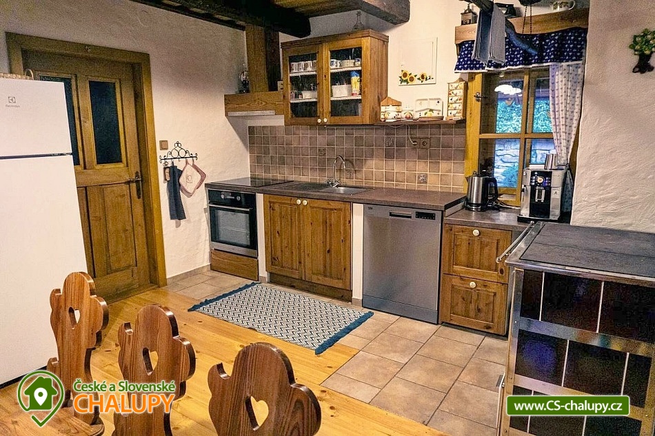 Valašská dřevěnice s bazénem a vířivkou na zahradě se nachází v obci Seninka, v malebném údolí Vizovických vrchů nedaleko města Vsetín. Těšit se můžete na krásnou okolní přírodu Beskyd, stylové venkovsky laděné ubytování, posezení na terase nebo na relaxování ve vířivce. Tato útulná chaloupka nabízí ubytování pro až 12 osob ve třech čtyřlůžkových ložnicích. V ložnici v přízemí je k dispozici 1x dvoulůžko a 2x jednolůžko. Součástí ložnice jsou balkónové dveře s výhledem na krb a možností vyjít rovnou na terasu. V podkroví jsou umístěné další dvě ložnice. Jedna ložnice do tvaru A obložená smrkovými palubkami se 4x jednolůžkem. Druhá s vikýřem a krásným výhledem na louku nad chalupou a s 1x dvoulůžkem a 2x jednolůžkem. Do chalupy se vstupuje přes předsíň s prostorem na přezouvání, s věšáky pro velké i malé a úložným prostorem pod schody do podkroví a vinotékou. Společní chvíle lze trávit v obývacím pokoji s krbovými kamny, SMART TV, DVD, Xboxem, internetovým rádiem, sedací soupravou a koutem s dřevěným posezením. K vaření je k dispozici plně vybavená kuchyň (indukční deska, pečící trouba, mikrovlnná trouba, myčka, lednička s vrchní mrazničkou, automatický kávovar De`Longhi, ruční šlehač a tyčový mixér) s kamny na dřevo, ve kterých si lze rozpéct pečivo dokřupava nebo i upéct pizzu. V podkoroví je umístěná malá odpočívárna se sedačkou, stolem a hračkami pro děti. Pro děti je dále k dispozici dětská židlička 2x, cestovní postýlka 2x vč. matrace a lůžkovin, dětská vanička, přebalovací podložka, stupátka a dětské WC sedátko. Sociální zařízení zahrnuje dvě koupelny. V přízemí je koupelna se sprchovým koutem, WC, s elektricky vyhřívaným žebříkem a pračkou. V podkroví se nachází koupelna se sprchovým koutem a WC. Vytápění je řešeno plynovým topením s radiátory s termostatickými hlavicemi pro udržení ideální teploty v každém pokoji. Ve slunečných jarních a letních dnech se voda nahřívá pomocí solárního ohřevu, v ostatních dnech je voda dohřívána plynovým topením. V celém objektu je k dispozici WIFI připojení na internet. Na venkovní terase lze relaxovat ve vířivce s celoročním provozem a využívat dřevěné posezení s ratanovými židlemi nebo polohovatelné a houpací lehátka. Příjemnou atmosféru doplňuje kamenný krb s možností grilování nebo opékání špekáčků. V letní sezóně je k dispozici bazén. Krytá náspa v délce 18m poskytuje v letních dnech příjemný stín a venkovní osvětlení zajistí romantické večerní posezení. Na částečně oplocené zahradě je houpačka s výhledem na okolní kopce a pískoviště pro nejmenší. K dispozici je také sada pro badminton a další vybavení pro sportovní aktivity. Uzamykatelný sklep slouží jako úschovna pro kola, lyže a další potřebné věci. Parkovat lze přímo u objektu. V okolí chalupy možnost turistiky, cykloturistiky, koupání, rybaření, houbaření, lyžování a běžkování. V blízkosti chalupy je hřiště s asfaltovým a umělým povrchem, kde si můžete zahrát tenis, nohejbal, volejbal, zajezdit na kolečkových bruslích nebo se děti můžou vyřádit na malém dětském hřišti s průlezkami a houpačkou. Mezi možnosti koupání patří např.: přírodní koupaliště Balaton v Novém Hrozenkově, vodní nádrž Všemina, bazén Vsetín - Městské lázně, Aqua park Valašské meziříčí, Vodní svět Velké Karlovice, koupaliště Vsetín, koupaliště Zděchov, atd. Přímo v obci se nachází lyžařský vlek provozovaný za dobrých sněhových podmínek, dále jsou k dispozici blízká lyžařská střediska Pozděchov, Hovězí - Na skalce, Zděchov a další. K výletům láká Hornolidečská magistrála pro cyklisty, blízká Rozhledna Vartovna, Rozhledna na Královci, Vsetínský zámek, zámek Vizovice, Valašské muzeum v přírodě (skanzen) - Rožnov pod Radhoštěm, Pustevny - památné budovy, Radegast, sjezd na koloběžkách nebo Muzeum Tatra v Kopřivnici. Těšíme se na Vás u nás.