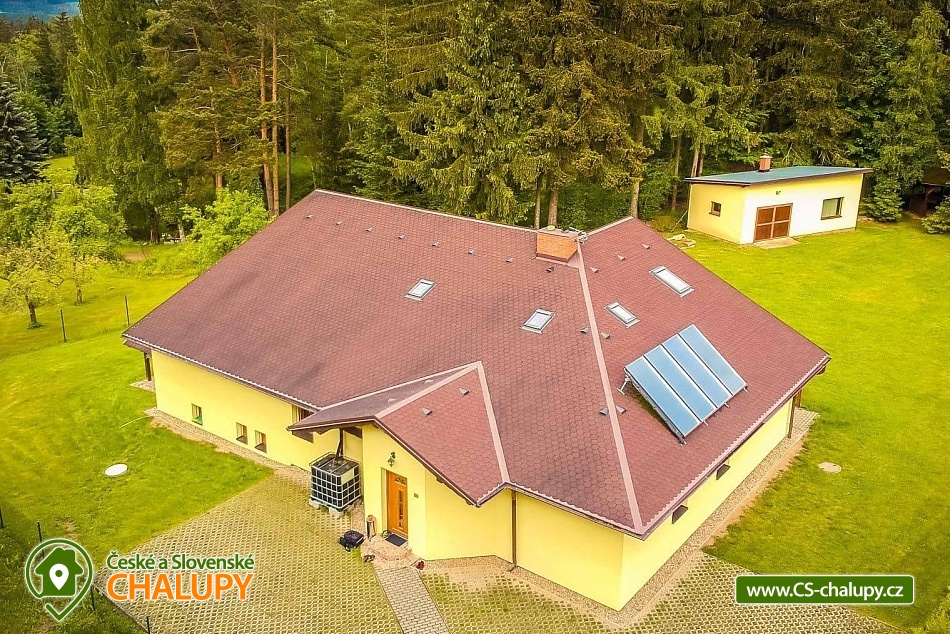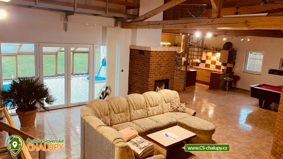 Wellness chalupa s bazénem u hradu Lipnice nad Sázavou, obec Vilémovec - Lipnice nad Sázavou. Mimořádně luxusní rekreační chalupa s bazénem, saunou a vířivou vanou. V přízemí komfortně zařízeného objektu se nachází prostorná hala: plně vybavená kuchyně (sklokeramická varná deska, mikrovlnná trouba, 2x lednice, kávovar, varná konvice, myčka, toustovač), jídelna a obývací pokoj zahrnující 3x sedací soupravu, krb, TV+SAT, DVD a kulečník. Dále ložnice, se 4 lůžky z toho dvakrát jednolůžko dvě palandy. 2. pokoj 1x dvoulůžko a 2x palanda + plazmová televize. V podkroví chalupy je ložnice se 2 lůžky ,1x rozkládací lůžko a jedna válenda. Sociální zařízení tvoří jedna koupelna se sprchovým koutem, umyvadlem a samostatné WC. Druhá koupelna s umyvadlem a vířivkou. V objektu je voda z vrtu. Vytápění objektu je kombinované krb, podlahové, elektrické a solární ohřev vody, fotovoltaika. Solární ohřev vody, fotovoltaická elektrárna(tyto energie vyrobené na střeše se neúčtují). Účtují se pouze energie odebrané ze sítě. Chalupa má vlastní wellness - saunu, vířivou vanu, zastřešený venkovní solárně vyhřívaný bazén se slanou vodou a skluzavkou pro děti (8 x 4 x 1,4 m). Přístup k bazénu přímo z obývacího pokoje a kuchyně. Bazén je provozován od dubna do září. Teplota vody závisí vždy na slunečním svitu. Mimo toto období se bazén používá jako ochlazovací ze sauny. Bazén je v ceně pobytu. Na oploceném pozemku je zahradní altán s krbem a udírnou, ohniště s posezením a přenosný plynový gril. Parkování přímo u domu. Majitel zde nebydlí. V létě v okolí možné houbaření ,rybaření(rybník Váha 2,4km. Rybaření pouze s rybářským oprávněním) a dále také množství turistických tras i cyklostezek s atraktivními cíli. V okolí rekreačního domu Vám doporučujeme navštívit především krásnou přírodu Českomoravské vrchoviny protkanou lesy a řadou turistických cest. Navštívit můžete nedaleký hrad Lipnice v Haškově Lipnici nad Sázavou nebo renesanční zámek ve Světlé nad Sázavou. Mnoho kulturních i sportovních zážitků Vám nabízí i nedaleký Havlíčkův Brod se svým historickým centrem s městskými hradbami nebo Humpolec se svou vyhlídkovou věží a židovskou synagogou. Vysočina - pronájem rekreačního domu s vlastním wellness! Majitel zde nebydlí.