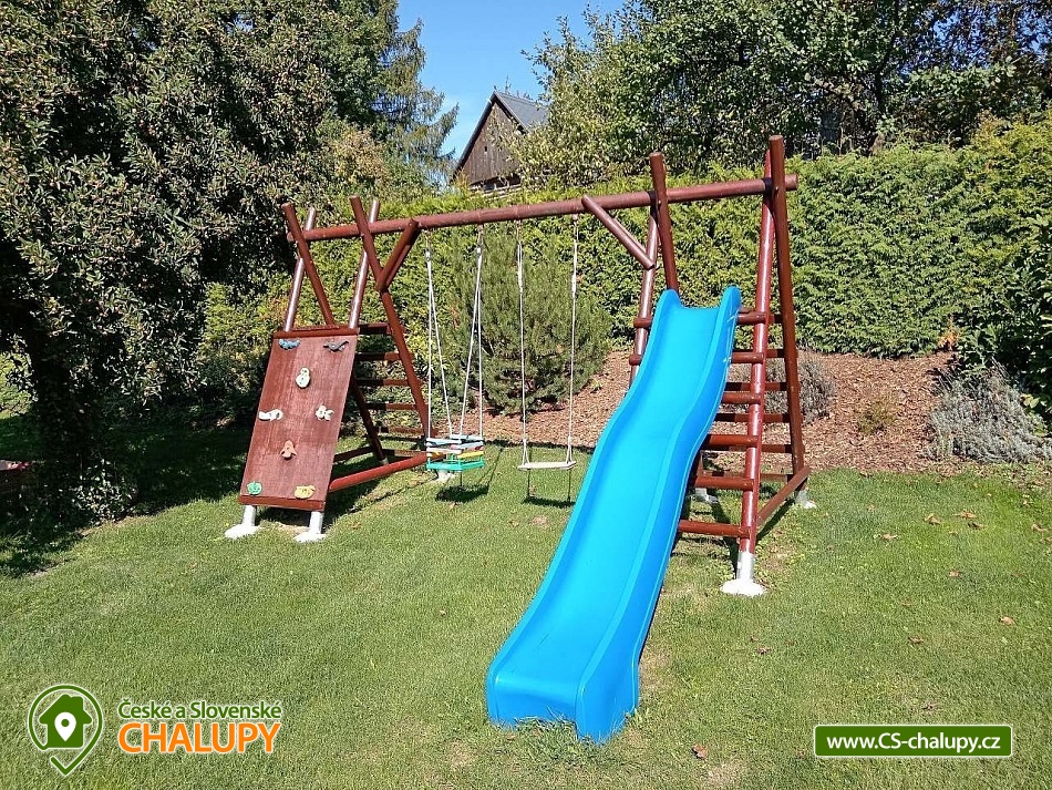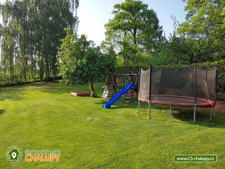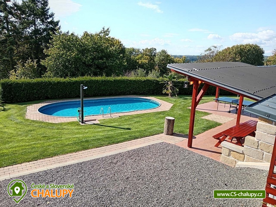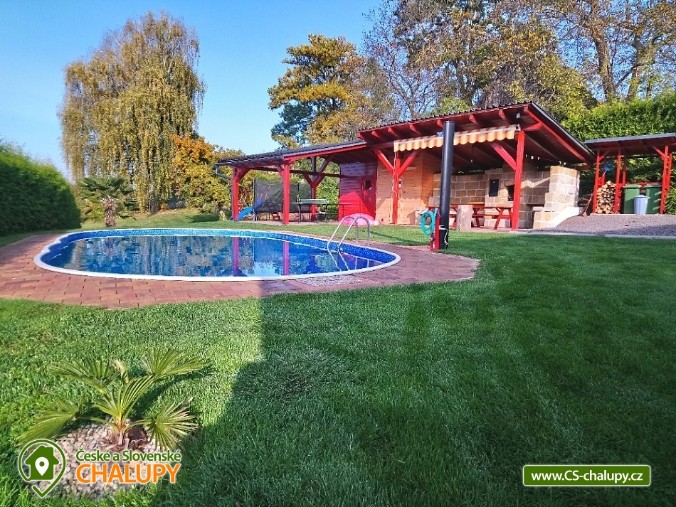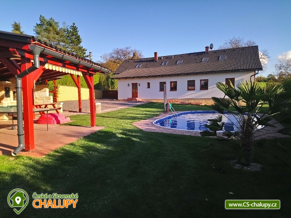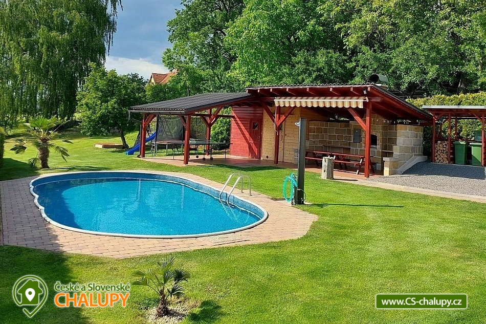 Wellness chalupa s bazénem nedaleko dětského areálu Šťastná země v Radvánovicích u Turnova - Český ráj a výhled na hrad Trosky. Wellness - finská sauna, vířivka a bazén 4x9m. Dále grilování ve venkovním krbu v prostorné pergole a stolní tenis. Prostě dovolená jak má být. A pro děti máme také pískoviště, houpačky, skluzavku a velkou trampolínu. Kapacita chalupy je až 12 osob ve 4 ložnicích. Chalupa je rozdělena na dva apartmány. Jeden pro ubytování (pergola, bazén, zahrada a okolí....) a druhý jako zázemí pro služby ubytovaným. Vchody a zahrady jsou oddělené. V podkroví se nachází 2 pokoje dvoulůžkové a 2 pokoje čtyřlůžkové s masivními postelemi a s kvalitní ortopedickou matrací ze studené pěny. V přízemí se nachází hlavní obytná místnost s kuchyní, pohovkou, pískovcovým barem a bukovým stolem pro 12 osob. Sociální zařízení: 2 x koupelna se sprchovým koutem a umyvadlem. 2 x WC. Vytápění je možno v krbových kamnech nebo přímotopy. Plně vybavená prostorná kuchyně. Okolí - Ve vzdálenosti asi 2km od chalupy se nachází obchod Troskovice, restaurace pod Troskami, letní restaurace Křenovský šenk, kemp Svitačka, přírodní zábavný areál pro děti "Štastná země". V okolních historických objektech se koná mnoho letních akcí např. jarmarky, šerm, jízda na koni, loutková divadla pro děti, četné cyklostezky a spousta dalších atrakcí. Okolo naši chalupy vede tzv. Zlatá stezka, která spojuje hrad Trosky a Podtrosecké údolí. Můžete také navštívit zámek Sychrov, Hrubý Rohozec, Hrubá Skála, hrad Kost, Valdštejn, hrad Trosky, Humprecht, Údolí podtroseckých rybníků, Prachovské skály, Jinolické rybníky, Muzeum panenek v Troskovicích, Muzeum vojenské techniky v Újezdu pod Troskami, Moto muzeum Borek pod Troskami ....atd.