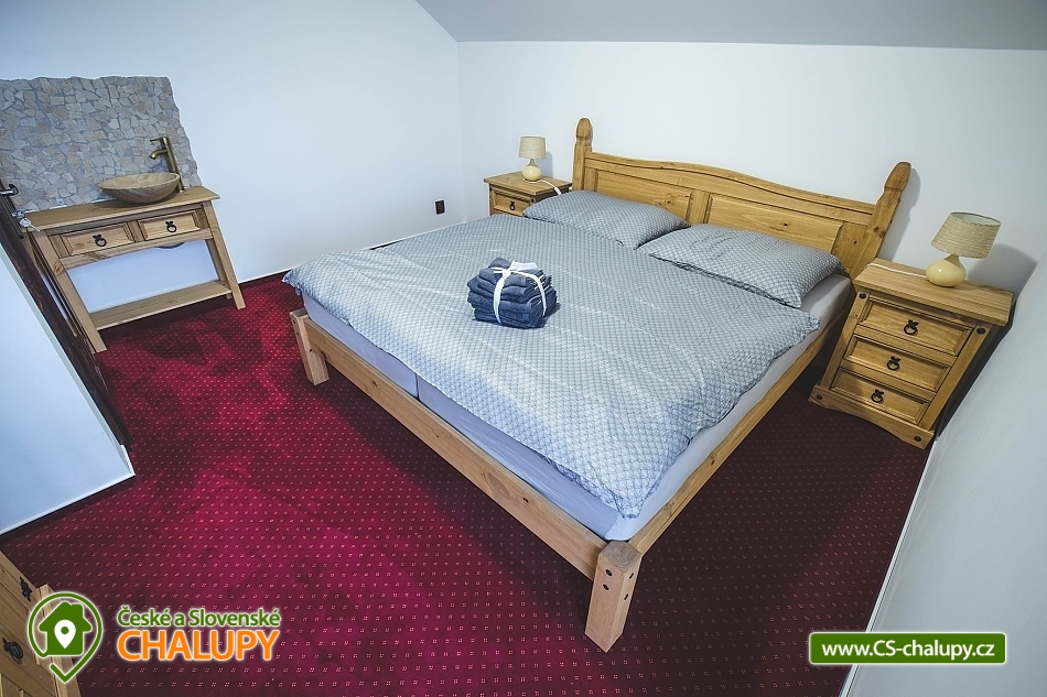 Wellness chalupa s koupacím jezírkem a vlastním wellness (parní sauna, finská sauna, vířivka, relaxační zóna) se nachází ve Slezských Beskydech v obci Písečná, v okrese Frýdek-Místek. Z ložnic se naskýtá krásný výhled na Těšínské Beskydy. Chalupa je jako stvořená pro rodiny s dětmi i větší skupiny přátel. Objekt disponuje celkovou kapacitou až 32 osob v 7 pokojích / apartmánech. Objekt pronajímáme jako celek, v týdnu je však po dohodě možné pronajmout wellness i apartmány samostatně. K dispozici je 5 pokojů + 2 apartmány s ložnicí, kuchyňkou, obývacím pokojem s rozkládací sedačkou, vlastní koupelnou a WC. Pokoje mají k dispozici společenskou místnost s kuchyní. Televize, WiFi. Plně vybavená kuchyně (lednice, mikrovlnná trouba, sklokeramická deska, varná konvice), jídelna pro 24 osob, obývací pokoj a LCD televize. Dále 2 velké terasy s posezením a venkovním grilem. Pivnice s barem a výčepem, posezením pro 32 osob. Dětský koutek a herna. Venkovní nadzemní bazén (v létě), dětské prolézačky, houpačky, pískoviště, tenisové kurty, fotbalové hřiště, workoutové hřiště. Bezplatné WiFi připojení i dětská postýlka jsou samozřejmostí. V suterénu budovy se nachází wellness zóna se saunou a vířivkou. Vytápění: Podlahové vytápění - tepelné čerpadlo. Kachlový krb ve společenské místnosti. Kousek od chalupy se nachází obecní dětské hřiště, prolézačky, houpačky, klouzačky s pískovištěm, tenisový kurt, malé i velké fotbalové hřiště a na posilování workoutové hřiště s trampolínou. Možnosti koupání: koupaliště Ameryka v Jablunkově, koupaliště Třinec, bazén Třinec, bazén Bystřice, bazén Istebna, vodní park Hotel Gołębiewski ve Wiśle, přehrada Morávka, Žermanice, Těrlicko. Blízká lyžařská střediska: Mosty u Jablunkova, Severka, Hrádek, Bukovec - Kempaland, Horní Lomná - Přeláč, Armáda. Velká Rača, Istebna. Nenechte si ujít návštěvu Jablunkovského arboreta, Přírodní rezervace v Bukovci, Skalních koulí Megoňky a Vápenných pecí ve Vendryni. Děti budou nadšené URSUS zážitkovým centrem. Do sytosti si zalyžujte v několika lyžařských střediscích. Nejblíž se nachází Kempland, Ski areál Hrádek i Ski areál Mosty u Jablunkova. Na skok to máte i na Slovensko, navštivte Chráněnou krajinnou oblast Kysuce, město Čadca a Športcentrum Oščadnica. Těšíme se na Vás u nás.