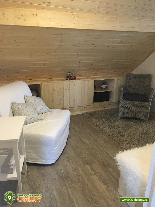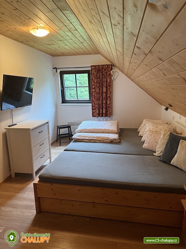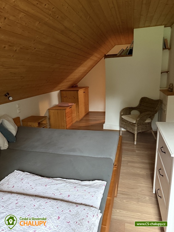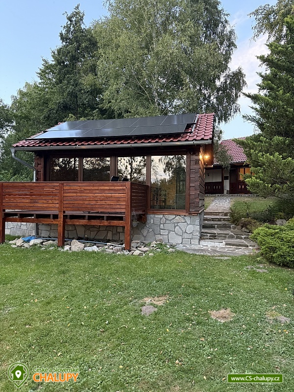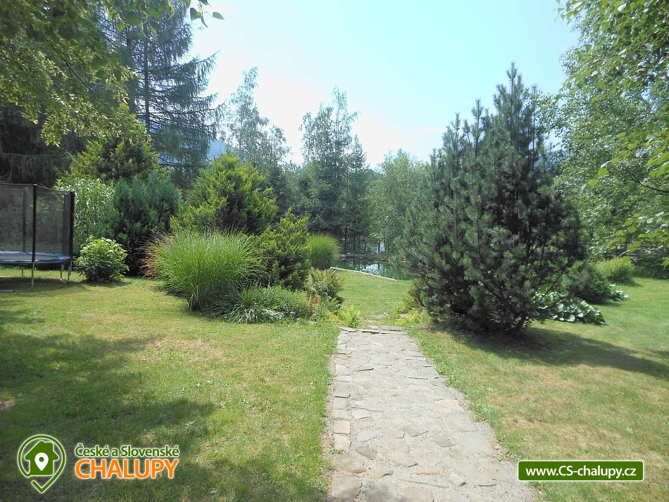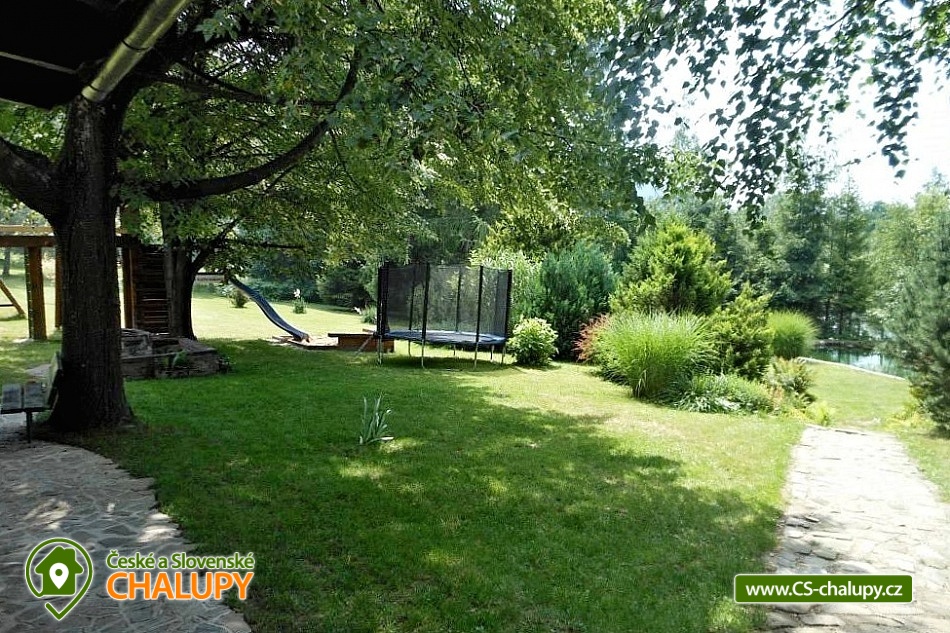 Wellness chalupa a koupací jezírko na úpatí hory Radhošť v CHKO Beskydy. Chalupa má kapacitu až 12 osob ve 3 ložnicích. Chalupa s wellness (sauna a vířivka) a koupacím jezírkem na vlastní velké zahradě. Do chalupy se vchází přes prostornou, zasklenou verandu s příjemným posezením i v nepříznivém počasí. Sociální zařízení objektu tvoří 2 samostatné WC a 2 koupelny se sprchovým koutem a žebříkovým topením. Dále v přízemí chalupy naleznete plně vybavenou kuchyň (lednička s mrazničkou, myčka, el. varná deska, varná konvice, kávovar, mikrovlnná trouba, dvě remosky), společenskou místnost se stylovými krbovými kamny, jídelním stolem a TV. Součástí chalupy je zařízená herna s pingpongovým stolem, kde jsou k dispozici i další venkovní hry (petanque, kroket...). Po dřevěných schodech se dostanete do podkroví, kde jsou 3 ložnice: 2 ložnice jsou 3-lůžkové (na 1 posteli umístěná vedle sebe 3 lůžka o velikosti 90x200 cm) a dále mají obě ložnice možnost 1 přistýlku 80x200 cm řešené vysouvacím lůžkem z uvedené postele. Třetí ložnice je také 3-lůžková (na 1 posteli vedle sebe umístěná lůžka o rozměru 2x 80x200 cm a 1x 90x200 cm) s možností 1 přistýlky na rozkládacím křesle (80x190 cm). Vytápění chalupy zajišťuje krb ve společenské místnosti a elektrické přímotopy. U objektu je vlastní rozsáhlý pozemek 3500 m2, koupací přírodní jezírko 8 x 6m, dětské prolézačky se skluzavkou a pískovištěm, gril, ohniště, kuželky, badminton, míče na fotbal a volejbal. Vedle chalupy je sad, kde se nachází minigolf a hřiště pro volejbal/nohejbal. Parkování je možné u objektu. Svojí polohou je chalupa ideálním výchozím bodem pro turistiku a cykloturistiku. V okolí chalupy Vám doporučujeme navštívit krásnou přírodu a známá místa CHKO Beskydy. K těm nejvýznamnějším patří bezesporu Pustevny. Najdete zde typické dřevěné stavby postavené v lidovém slohu na návrh architekta Dušana Jurkoviče. Dále si můžete udělat výlet na vrchol hory Radhošť, odkud lze spatřit jeden z nejkrásnějších pohledů na beskydské panorama. Za shlédnutí stojí také socha Radegasta - boha úrody, stád a pohostinství nebo město Rožnov pod Radhoštěm, jehož součástí je Valašské muzeum v přírodě a známý skanzen. Těšíme se na Vás u nás.