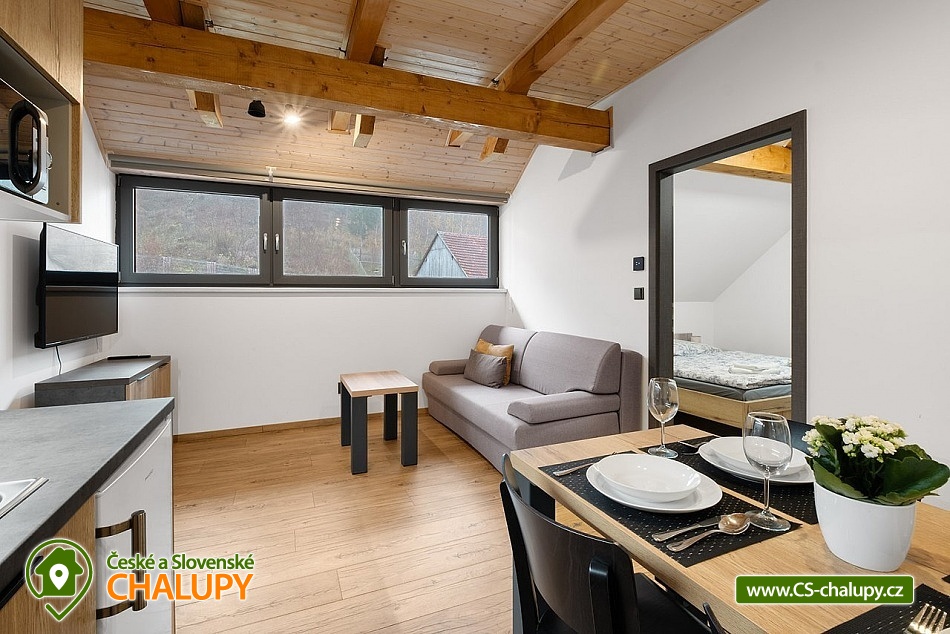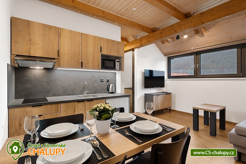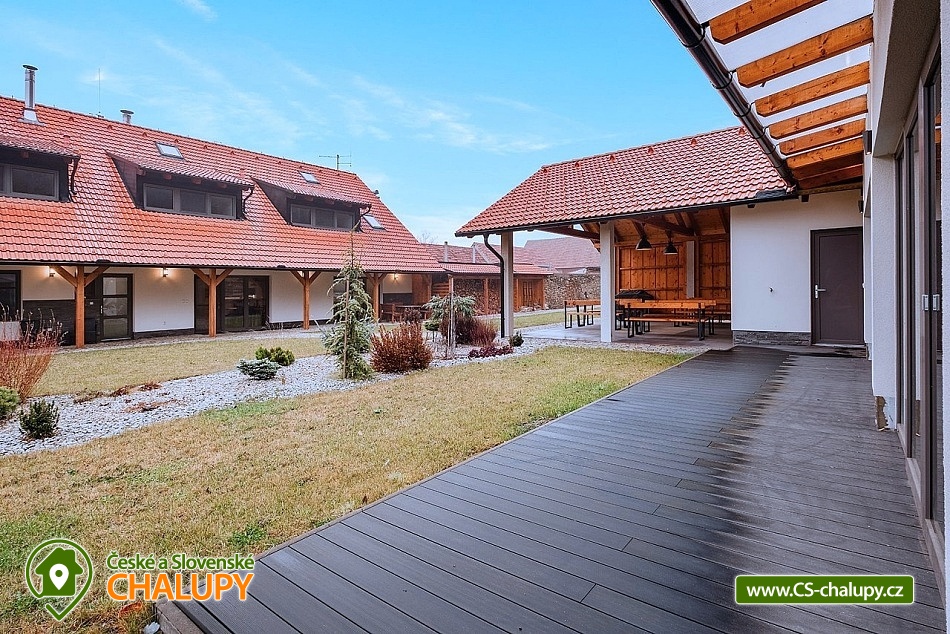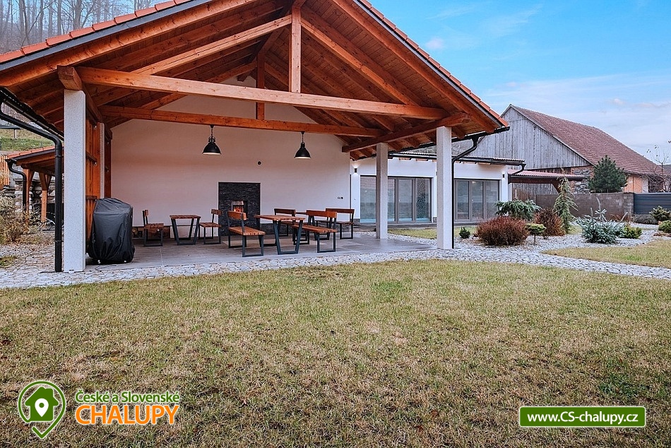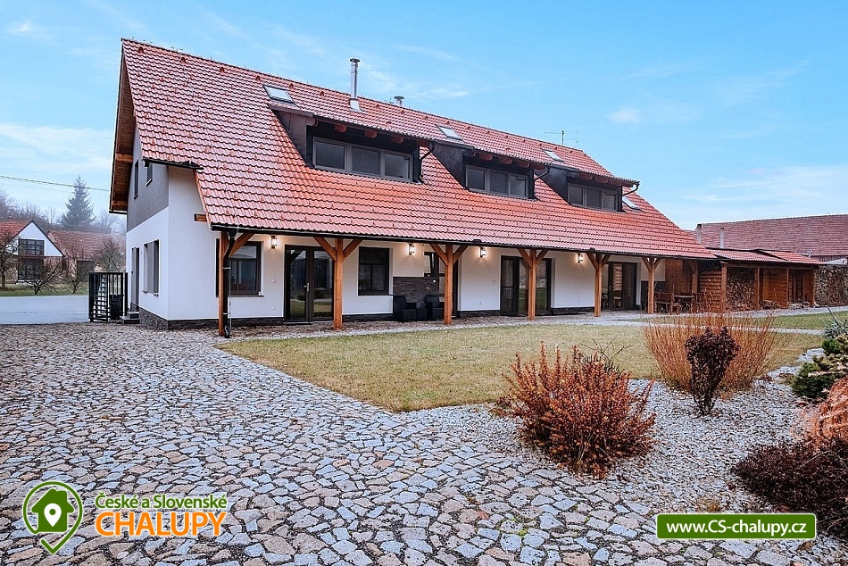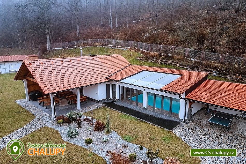 Wellness chalupa s vnitřním bazénem nedaleko Přírodního parku Oslava a Dalešické přehrady, kraj Vysočina. K dispozici je vyhřívaný krytý bazén se slanou vodou, sauna na dřevo a venkovní vířivka. Dále terasa s grilem a pro děti jsou k dispozici fotbalové branky a pingpongový stůl. Kapacita chalupa je až 16 osob (8 lůžek + 8 přistýlek) ve 4 apartmánech. POPIS: APARTMÁNY: Komfortní apartmány s vlastní plně vybavenou kuchyní, moderní koupelnou a pohodlnou manželskou postelí. Rozkládací gauč nabízí flexibilitu pro další hosty či rodinu. Další prostorný gauč se nachází ve společenské místnosti. TV, jídelní stůl + 4 židle. Vybavená kuchyň – rychlovarná konvice, mikrovlnná trouba, varná deska, lednička s mrazákem, topinkovač. Samostatné sociální zařízení se sprchovým koutem a toaletou. Osušky a povlečení. SPOLEČENSKÁ MÍSTNOST: Vybavená kuchyň - rychlovarná konvice, mikrovlnná trouba, varná deska, lednička s mrazákem, elektrická trouba, toastovač, kontaktní gril, myčka, kávovar, bar s výčepním zařízením. Sociální zařízení, krbová kamna, wifi, TV, gauč, stoly a židle. VENKOVNÍ PROSTOR: zastřešená terasa se zahradním nábytkem, gril. K dispozici fotbalové branky, pingpongový stůl. Venkovní vířivka. BUDOVA S BAZÉNEM: vyhřívaný bazén se slanou vodou, šatna, sauna na dřevo, sprchy, sociální zařízení, odpočinková místnost s lehátky. V okolí: Obora Jinošov, Mohelenská hadcová step, Dalešická přehrada, Přírodní park Oslava, Šikland, Zámek Velké Meziříčí, Budišov a Valeč, Zámecký park Jaroměřice, Vodopády u Sedlce, Velká skála a zřícenina Templštějn, Studánka u Jakuba. Rozhledny: Fajtův kopec, Wilsonova skála, Pekelný kopec a Babylon. Těšíme se na Vás u nás.
