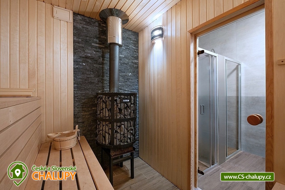 „Wellness chalupa - vyhřívaný bazén se slanou vodou, sauna a vířivka“