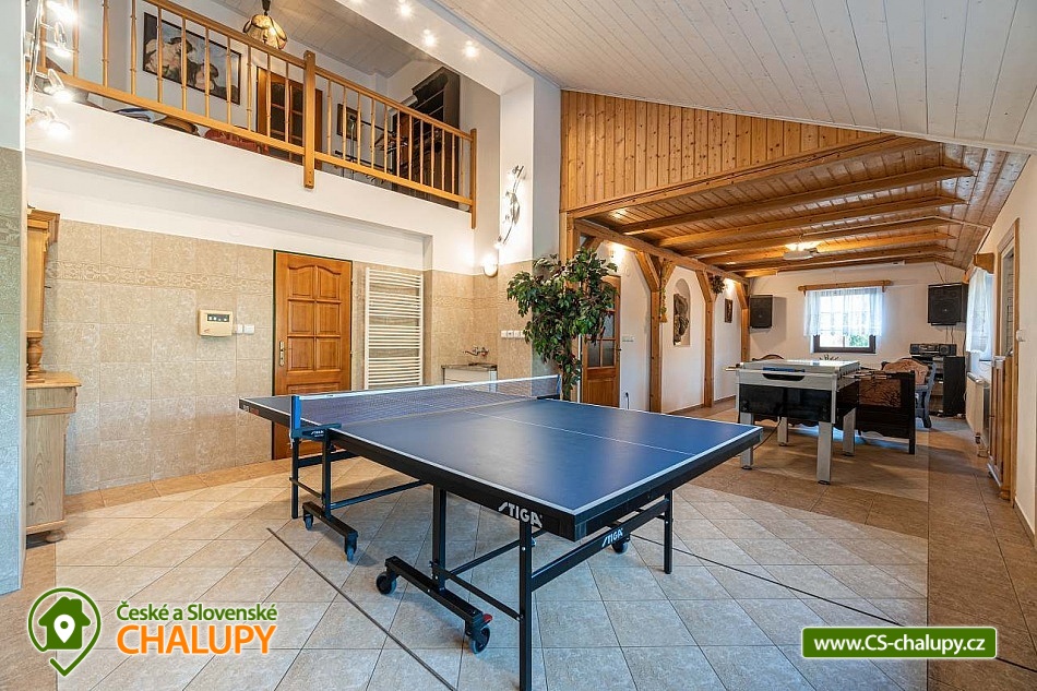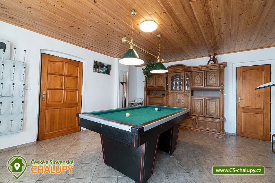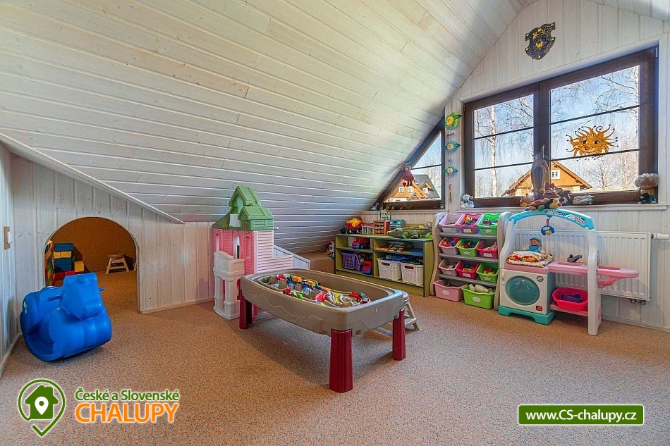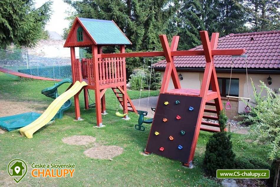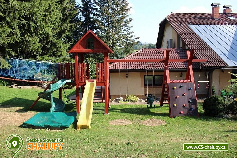 Wellness chalupa se saunou a vnitřním vířivým bazénem u říčky a obce Zdobnice, obec Rampuše - Orlické hory. Prostorná rekreační chalupa - k dispozici je plně vybavená kuchyně (lednička s mrazákem, myčka, sporák se sklokeramickou deskou a troubou, mikrovlnná trouba, el. kráječ, robot, topinkovač, kávovar) a dále jídelna s obývacím pokojem, kde jsou krbová kachlová kamna, TV + SAT, možnost připojení k internetu. K dispozici velká hala, kde je možné si zahrát šipky, kulečník, stolní tenis, stolní fotbal a využívat saunu a chlazení na pivo. Dále je v objektu domácí kino: promítací plátno, reproduktory, projektor. V přízemí je stylově vybudovaná místnost s relaxačním bazénem, který má perličkové dno, masážní trysky, sedáky a osvětlení. U bazénu sprcha, a WC. V prvním patře je plně vybavená herna pro děti, apartmán se 2 lůžky, kuchyňkou, vlastní koupelnou a WC. Dále je v patře druhý apartmán se 2 lůžky a 2 přistýlkami, kuchyňkou, vlastní koupelnou, WC a třetí apartmán se 2 lůžky, koupelnou a WC. V 1. patře je dětský pokoj s patrovou postelí, dvoulůžkem, dětskou postýlkou a dětskou sedačkou. Ve druhém patře je podkrovní pokoj se 4 lůžky. Topení je zajištěno ústředně tepelným čerpadlem, dále podlahové elektrické topení a krbová vložka s rozvodem teplého vzduchu po chalupě. U chalupy je hřiště na volejbal, nohejbal, trampolína s bezpečnostní sítí, zahradní domek pro děti, pískoviště, skluzavky, houpačky, tobogán, zahradní nábytek, gril a posezení na dřevěné terase, která zasahuje nad malý rybníček. V prostoru nad chalupou je zastřešené venkovní posezení. Parkování je možné u objektu pro až 6 automobilů. Chalupa se nachází poblíž běžeckých tratí a cyklistických tras. Sjezdovka ve Zdobnici je vzdálena pouhé 4 km od chalupy. Blízká lyžařská střediska v okolí: Ski centrum Zdobnice, Říčky v O.h., Rokytnice v O.h. - Farák, Orlické Záhoří - Černá Voda, Start - Deštné v Orlických horách, Orlické Záhoří - Jadrná, Deštné v Orlických horách. Okolí: Rychnov nad Kněžnou, renesanční zámek Častolovice, Nové Město nad Metují, Doudleby nad Orlicí, Opočno a hrad Potštejn. K významně navštěvovaným místům Orlických hor patří naučná stezka Zemská brána, návštěva pevnosti Hanička a Šerlišský Mlýn. Pokud jedete s dětmi, doporučujeme navštívit ZOO ve Dvoře Králové n. L. nebo si jít zaplavat do Dobrušky, Vamberka nebo Rychnova nad Kněžnu. Doporučujeme navštívit lanopark a motopark v Říčkách a v Deštném v Orl. horách. Seznam vyjmenovaných lokalit a mnoho dalších tipů na výlety Vám předáme při příjezdu.
