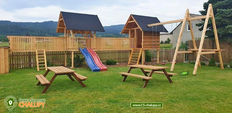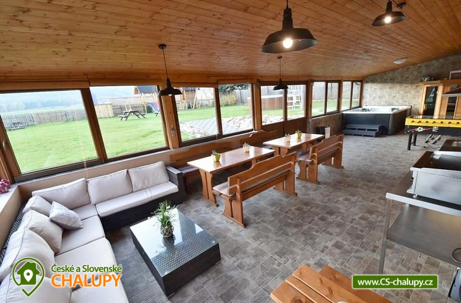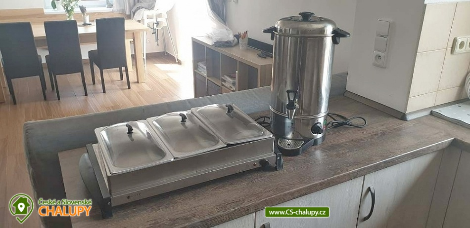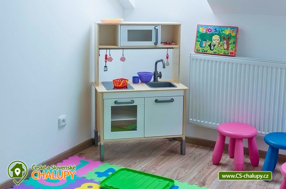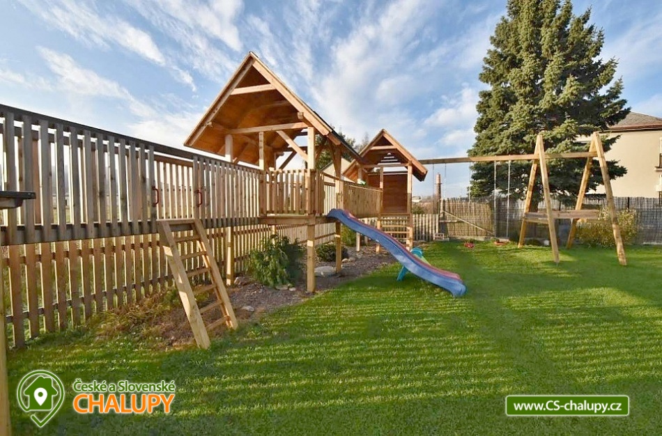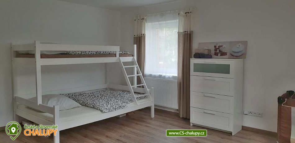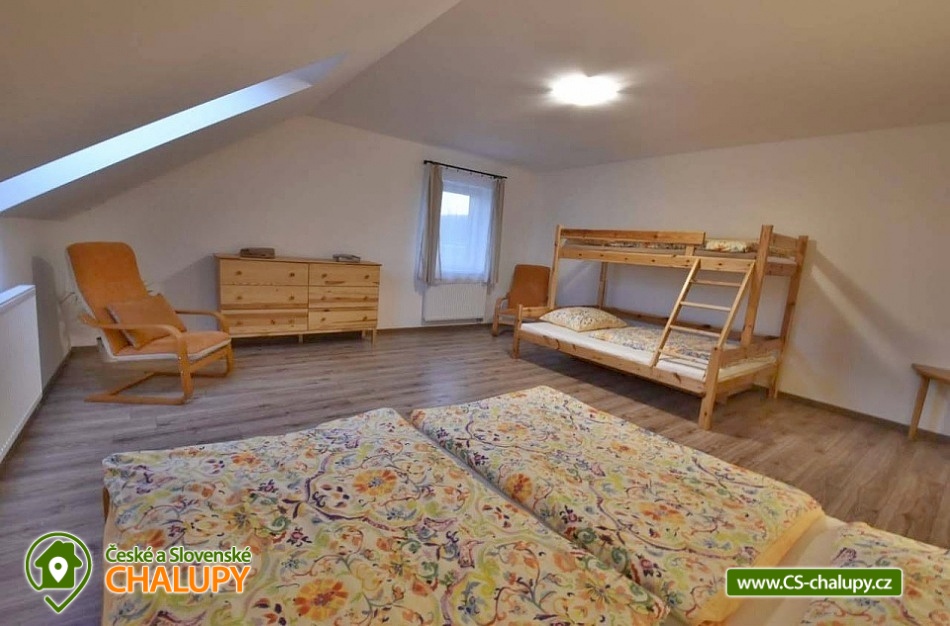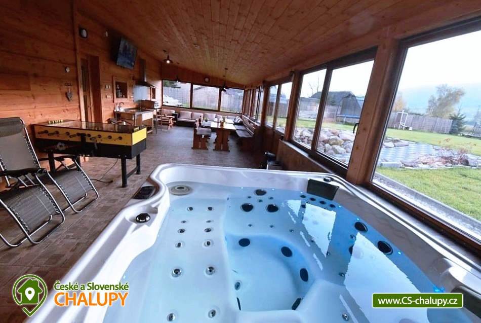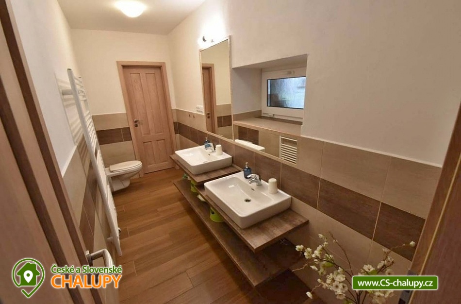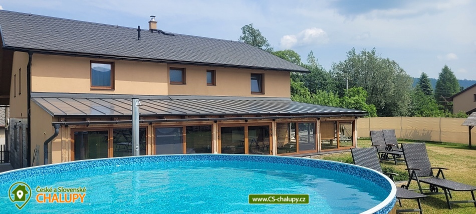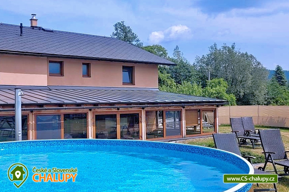 Wellness chalupa se nachází na klidném místě pod Bukovou horou (celoroční resort Buková Hora) v obci Červená Voda v Orlických horách. Těšit se můžete na Wellness zónu (70 m²) umístěnou v zimní zahradě s vířivkou pro 6 osob, infrasaunou pro 5 osob, klidovou zónou s jídelními stoly a posezením na ratanové sedačce a stolním fotbálkem, 55 - palcovou Android televizí. Specialitou zimní zahrady je i profi gril s nerezovým přípravným stolem a umyvadlem. Navíc si při relaxování a grilování můžete užívat výhled do přírody a na Bukovou Horu. Tato komfortní wellness chalupa poskytuje ubytování pro 21 osob, celkem v pěti pokojích. Ubytování je vhodné ke sportovně relaxační pobytům, ideální pro rodiny s dětmi. Nechybí ani dětský koutek. POPIS pokojů: Zelený pokoj – 4 lůžkový, s manželskou postelí a jednolůžkem s vysunovací další postelí, nočními stolky, komodou a šatní skříní. Modrý pokoj – 4 lůžkový, s manželskou postelí a dvěma jednolůžky, nočními stolky a komodou. Oranžový pokoj – 6ti lůžkový, pokoj s manželskou postelí, samostatným jednolůžkem, dvoupatrovou postelí s rozšířeným spodním lůžkem o šíři 140 cm, nočními stolky, komodou a šatní skříní. Hnědý pokoj – 4 lůžkový, s manželskou postelí, dvoupatrovou postelí s rozšířeným spodním lůžkem o šíři 140 cm, nočními stolky a komodou. Přízemní pokoj – 3 lůžkový, s manželskou postelí a širším jednolůžkem (120cm), dětskou postýlkou a dvěma komodami. K dispozici jsou další 2 dětské postýlky. Pro společné chvíle slouží společenská místnost s 55 palcovou chytrou LED TV a novým Xboxem, který oceníte zejména při horším počasí. Součástí chalupy je velká moderní kuchyň s americkou lednicí, další monoklimatickou lednicí (celkem 680 litrů objemu), kávovarem na kapsle Dolce Gusto, myčkou, mikrovlnou troubou, nádobím atd. Větší skupina ocení také 10l ohřívač vody na čaj nebo kafe a bufetový ohřívač 3x2litry pro udržení teploty při snídaních nebo při grilovačkách. K dispozici je datově neomezený internet po celé (4x Wifi) chalupě s rychlostí až 100Mbit/s a pro větší zábavu je chalupa vybavená také párty reproduktorem. Sociální zařízení zahrnuje celkem 3 samostatné koupelny s WC a jedno samostatné WC. Koupelna v přízemí je vybavena 2 umyvadly a jedno je sníženo pro pohodlí Vašich dětí. Koupelna má vyhřívanou podlahu, žebříkový radiátor a velký sprchový kout s tropickým deštěm. Druhá koupelna v přízemí má také podlahové vytápění, žebříkový radiátor a sprchový kout s tropickým deštěm. Je zde nově i pračka se sušičkou. Třetí a největší koupelna se nachází v podkroví a je vybavena dvoumyvadlem po celé šířce koupelny, žebříkovým radiátorem, klasickým radiátorem a vanou. V podkroví se také nachází samostatná toaleta s malým umyvadlem. Pro malé děti je k dispozici koupací vanička. Utěrky a toaletní papíry jsou ceně pobytu. Vytápění je řešeno moderním kondenzačním plynovým zaručujícím nevyčerpatelnou zásobu teplé vody. Chalupa je nová a zateplená, proto je spotřeba energie i v zimním období minimální. Přízemí i Wellness je vybaveno podlahovým vytápěním. Pozemek kolem chalupy je celý oplocený a dostatečně veliký. Na zahradě lze posedět u ohniště. Děti se mohou těšit na velké pískoviště a novou herní venkovní sestavu. K vybavení zahrady patří také velká trampolína s vnitřní sítí pro větší bezpečnost dětí, venkovní vyhřívaný bazén se solární sprchou, lukostřelba, dětský domeček, badminton a petangue. Na zahradě je také velký zahradní domek (3,5 m X 3,5 m) který poslouží pro Vaše kola, lyže, kočárky atd. V případě zájmu lze zajistit výčepní zařízení a také sudy piva. Parkování lze přímo u objektu. V okolí chalupy možnost turistiky, cykloturistiky, koupání, houbaření, rybaření, běžkování a lyžování. V blízkosti je také jízdárna a tenisové kurty. Mezi možnosti koupání patří např.: přehrada Pastviny, koupaliště Králíky, Štíty - Acrobat Park, koupaliště Jablonné nad Orlicí, koupaliště Ruda nad Moravou, bazén Mezilesí, koupaliště Bludov - Vlčí Důl, Lanškroun - Dlouhý rybník, koupaliště Letohrad, atd. V zimním období blízká lyžařská střediska: Skiresort Buková hora v Červené Vodě (vyhřívaná čtyřsedačkou s krytou bublinou, nejdelší sjezdovka Orlických hor), Ski centrum Šanov (noční lyžování a půjčovna sněžných skůtrů) a Ski Resort Dolní Morava (nejprudší černá sjezdovka v ČR, sáňková dráha dlouhá 2,5 km, Stezka v oblacích, bobová dráha a nově Sky Bridge) a další. Běžecké trasy jsou vzdálené 300 m od chalupy. K výletům v okolí láká Rozhledna na Křížové hoře (procházkou), rozhledna Suchý vrch, Tvrz Bouda, Tvrz Hůrka, Trail park na Suchém Vrchu, Přírodní rezervace Kralický Sněžník s pramenem řeky Moravy a Klášter na Hoře Matky Boží v Králíkách. Těšíme se na Vás u nás.
