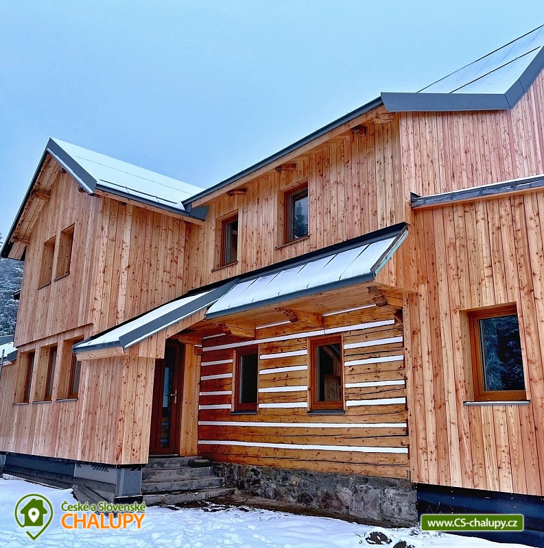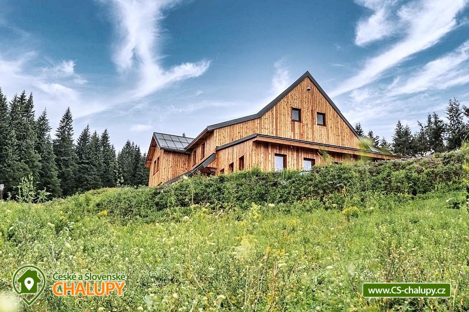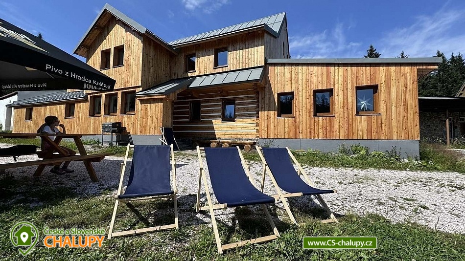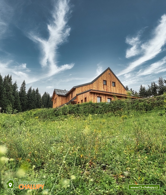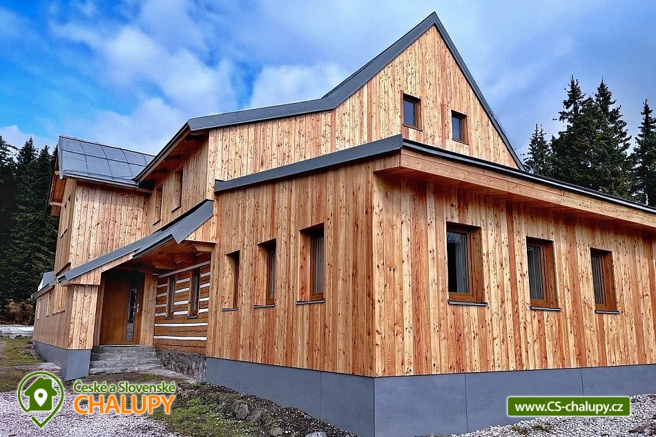 Wellness chalupa Černá hora se nachází na samotě, uprostřed lesů, na vrcholu Krkonoš (1190 m. n. m.) v bezprostřední blízkosti největšího krkonošského Černohorské rašeliniště a nedaleko od města Janské Lázně, poloha přímo na trase Krkonošské magistrály, kde můžete v letních měsících prožít krásné turistické, cyklistické, či koloběžkové zážitky. Blízké okolí nabízí spoustu možností pro odpočinek i aktivní dovolenou. Během ubytování se můžete těšit na svěží vůní horského lesa, na relax ve wellness se saunou a vířivkou. Chalupa poskytuje ubytování pro až 20 osob v 7 ložnicích. Ložnice se nachází v 1.patře chalupy a nabízí nezapomenutelné výhledy do okolní krajiny. Čtyři ložnice jsou dvoulůžkové, z toho tři s manželskou postelí a jedna s dvěma jednolůžky. Další tři ložnice jsou čtyřlůžkové s manželskou postelí a dvěma jednolůžky. Třetí a čtvrtá ložnice jsou spojené. Dětská postýlka je k dispozici. Pro společné chvíle slouží obývací pokoj se sedací soupravou a smart TV připojenou na internetovou televizi a prostřednictvím bezdrátového připojení se lze připojit na jakékoli vaše zařízení. Součástí chalupy je plně vybavená kuchyň (americká lednice, varná deska s šesti plotnami, trouba, kontaktní gril, mikrovlnná trouba, kávovar na kapsle, mixér a mnoho dalšího vybavení). V celém objektu je k dispozici WIFI připojení na internet. Relaxovat lze ve wellness zóně se saunou pro 6 - 8 osob a vířivkou. Sociální zařízení zahrnuje v přízemí 2x samostatné WC, 1x koupelnu s WC a sprchovým koutem. Dále dva sprchové kouty v přízemí u wellness. V prvním patře jsou další dvě koupelny se sprchovým koutem a toaletami. K dispozici je pračka. Vytápění je řešeno ústředním elektrickým kotlem. Každá z koupelen a wellness zóna mají navíc podlahové vytápění. Venku u chalupy je připraveno venkovní posezení s grilem a krásným výhledem do přírody Národního parku Krkonoše. K dispozici je ohniště. Malí návštěvníci se mohou těšit na dětské hřiště s prolézačkami, klouzačkou a houpačkou. V letních měsících lze parkovat přímo u objektu. V zimním období (zhruba od konce října do poloviny dubna) jsou zajištěna parkovací místa na parkovišti v Jánských Lázních a za poplatek lze zajistit dopravu k chalupě pásovým terenním vozidlem. Dále je možné se k ubytování dostat kabinovou lanovkou na Černou horu a ve stylu „expedice Apalucha“ dojít či sjet k chalupě. V okolí chalupy možnost turistiky, cykloturistiky, koupání, houbaření, lyžování a běžkování. V blízkosti jsou také tenisové kurty, lanový park a hřiště. Mezi možnosti koupání patří např.: aquacentrum Jánské Lázně, koupaliště Čistá, koupaliště Retro park Sejfy, Trutnov - Pekelský rybník, aquacentrum Aquacentrum Vrchlabí, rybník Vejsplachy, aquapark Špindlerův Mlýn, přehrada Labská, koupaliště Valteřice, jezero Bukówka, rybník Dolce, bazén Trutnov, atd. V zimním období blízká lyžařská střediska: Černá hora - Jánské Lázně, Košťálka, Skiport - Velká Úpa, Svoboda nad Úpou, Černá hora - Černý Důl, Pec pod Sněžkou, Třešňovka - Horní Maršov, Pěnkavčí vrch a další. K okolním výletům dále láká Černá hora s vyhlídkou a půjčovnou koloběžek, skalní vyhlídka Modré kameny, Stezka korunami stromů Krkonoše, Sněžka, Lanový park v Jánských Lázních, Lázeňská kolonáda v Jánských Lázních nebo Baldův svět a letní tubing Mladé Buky. Těšíme se na Vás u nás.