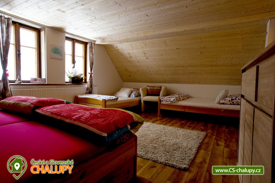 Wellness chalupa (sauna a vířivka) v Jizerských horách, poloha nedaleko Jizerské magistrály a osady Hrabětice - ubytování v obci Bedřichov. Kapacita chalupy je až 16 osob včetně 2 přistýlek, takže se ubytuje i několik rodin nebo větší skupiny. Až se vrátíte z lyží nebo rodinného výletu z Jizerských hor, uvolníte namožené tělo v sauně a vířivce, zchladíte se ve sněhu a pak si odpočinete na střeše sauny nebo posedíte ve vajíčku v relaxační místnosti u krbu s knížkou a sklenkou něčeho dobrého. Ve velké společenské místnosti s kuchyní, která je plně vybavena, si připravíte výbornou večeři a pokud se vám zrovna nechce vařit, do nejbližší restaurace je to 15 minut pěšky. Děti se zatím zabaví v koutku v patře, kde budou mít klid na různé hry a hračky, které jsou pro ně připraveny. Chalupa je tak prostorná, že si zde každý najde své oblíbené místečko k odpočinku. Pokud máte rádi víno, tak posezení v suterénu je pro vás jasná volba. Vyberete si zde z několika druhů vín. V podkroví se nachází 4 velmi útulné ložnice, ze kterých se vám ráno nebude chtít vstávat. Koupelna je velmi prostorná (2x oddělená sprcha a 2x wc), takže se nebudete mačkat nebo čekat až se uvolní místo. Pro nákupy potravin poslouží místní obchod 5 min. pod chalupou, kde je i zastávka busu, který vás zaveze do centra Bedřichova, ke sjezdovce nebo k začátku běžkařské magistrály, takže není potřeba používat auto. Díky velkému prostoru je chata vhodná na oslavy, firemní akce, semináře, romantické víkendy, či menší svatby. Také doporučujeme na srazy maminek s dětmi. Veškeré vybavení je zcela nové a dbáme tu na dokonalý úklid pokojů, který je zajištěn precizními parními čističi. Zdarma během pobytu pro vás bude připraveno nové povlečení, prostěradla, ručníky, žehlička a fén. K dispozici je i náhradní povlečení pro výměnu. U nás si dovolenou na 100% užijete, odpočinete si a načerpáte síly. V lyžařském středisku Bedřichov si užijete nejenom sjezdové lyžování, ale i více jak 180 km běžkařských tratí na Jizerské magistrále. Každý rok se zde pořádá světoznámý závod Jizerská 50. V létě pak zde najdete mnoho cyklotras. V okolí doporučujeme: lanový park, bobová dráha, rozhledna Královka, cyklotrasy, bowling, jízda na koních, vodní nádrž Josefův důl, protržená přehrada Bílá Desná. Těšíme se na Vaši návštěvu.