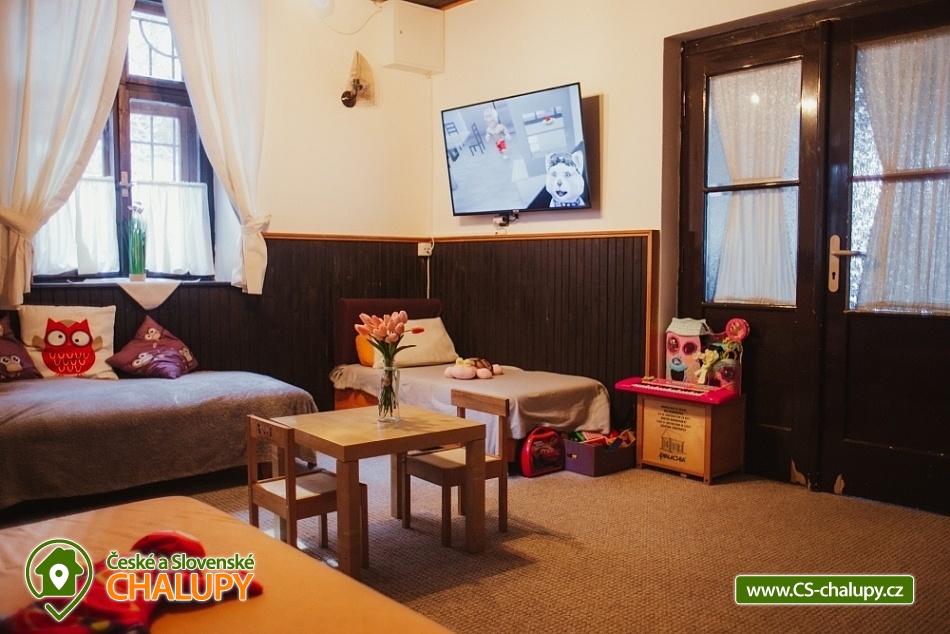 Wellness chalupa s vnitřním bazénem v srdci Krkonoš přímo na okraji Krkonošského národního parku u řeky Jizery, poloha u osady Hranice a obce Vilémov u Rokytnice nad Jizerou. Wellness nabízí vnitřní vyhřívaný bazén se slanou vodou, infra saunu pro 4 osoby a luxusní vířivku pro až 5 osob. Na pozemku protéká horský potok. Chalupa nabízí celkem 6 pokojů s kapacitou 25 lůžek + navíc 2 lůžka o délce 180cm. Pokoje: 4x čtyřlůžkový pokoj s manželskou postelí (140x200) a patrovou postelí (80x200), 1x čtyřlůžkový pokoj s manželskou postelí (140x200) a dvěma samostatnými postelemi (80x200), 1x sedmilůžkový pokoj se dvěma ložnicemi - (2x dvojlůžko 140×200, 1x jednolůžko 90×200, 1x patrová postel 80×180). Na každém pokoji je k dispozici HD TV s pevným připojením k internetu a signál WiFi. Každý pokoj má svou vlastní koupelnu se sprchovým koutem a WC. V přízemí se nachází dámské WC s umyvadlem a pánské WC s umyvadlem a pisoárem. Další sprchový kout a WC je součástí wellness. Kuchyně je plně vybavena moderními spotřebiči - 2x indukční deska s digestoří, horkovzdušná trouba s grilem, mikrovlnná trouba, myčka nádobí, americká lednice s výrobníkem ledu a kávovar na espresso. Společenská místnost nabízí příjemné posezení u kachlových kamen. Je zde velkoplošná TV, wifi, stolní fotbálek a plně vybavený bar s výčepem. Vytápění: nejvíce je využíváno vytápění elektrickými přímotopy, které umožňuje individuální nastavení teploty v každém pokoji/koupelně dle vašich představ. V prostorách wellness je po celé ploše instalováno podlahové topení a součástí společenské místnosti jsou velká krbová kamna na dřevo. Parkování je vyhrazeno na soukromém pozemku přímo u objektu s kapacitou cca 8 míst. Příjezd na parkoviště je přímo z hlavní udržované silnice. Chalupa je vhodným výchozím bodem pro letní i zimní sporty. Nejbližší vlek je pouze 250 m od chaty - Pašák ve Vilémově. Nejbližší velká střediska s lanovkami jsou 5 - 10 minut jízdy autem - Paseky, Rokytnice, Harrachov, Vysoké nad Jizerou, Jablonec nad Jizerou. Běžkařské tratě vedou v blízkosti chaty (do 1 km), případně nástup na Krkonošskou magistrálu v Harrachově nebo Rokytnici. V létě okolí přímo vybízí k turistice. Součástí chalupy je prostorná lyžárna/kolárna, takže je pobyt vhodný i pro milovníky cykloturistiky. Cyklotrasy vedou v okolí chaty - napojení na cyklotrasu Jizera je vzdáleno pouze 1,5 km. Těšíme se na Vás u nás.