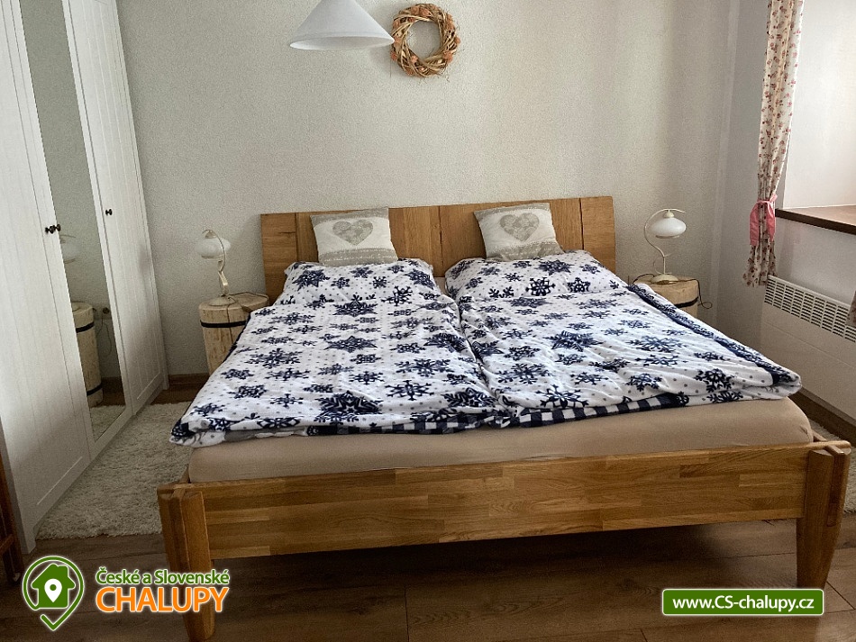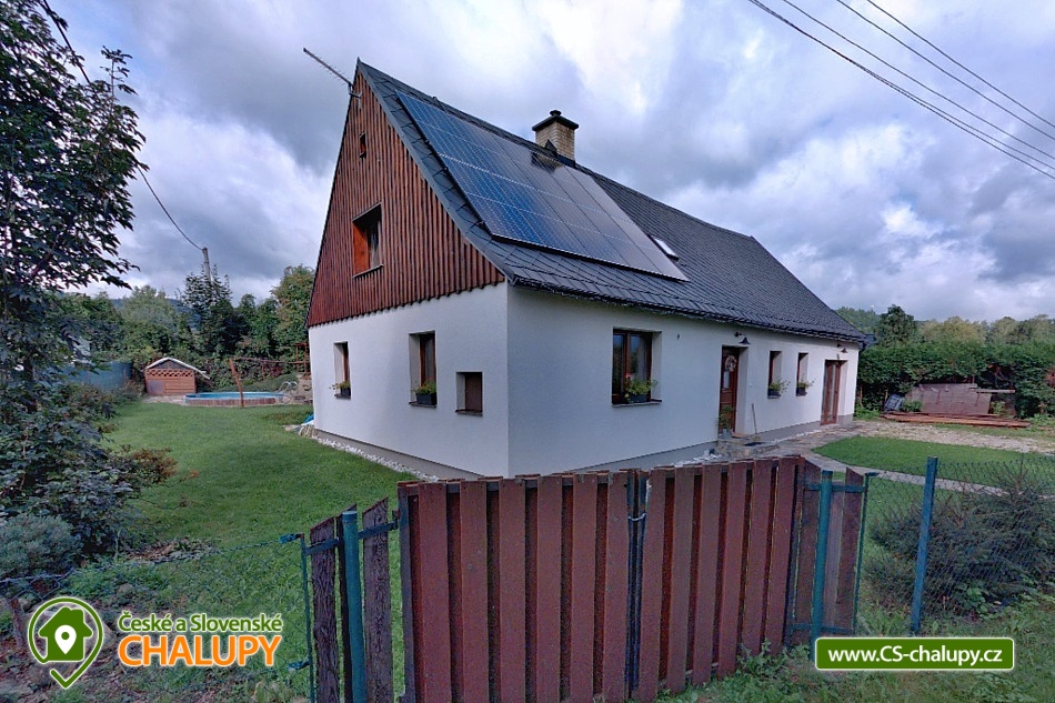 Wellness chalupa s bazénem nedaleko města Jeseník a přírodní rezervace Rejvíz nabízí celoročně ubytování pro až 12 osob ve 3 ložnicích. Wellness - finská sauna a infra sauna s relaxační zónou plus venkovní vyhřívaný bazén. POPIS: 3 ložnice vybavené manželkou postelí, v jedné ložnici rozkládací dvoulůžko, 2 obýváky s komfortním rozkládacím dvoulůžkem, 2 koupelny - v jedné koupelně je umístěná pračka, 2 kuchyně - komfortně vybavené i pro náročnější kuchaře (sklokeramická varná deska, el. trouba, lednička s mrazničkou, mikrovlnná trouba, myčka na nádobí, topinkovač, el. konvice a vše ostatní), 1 finská sauna pro 5 osob + 1 infra sauna s karbonovými topidly pro 2 osoby + relaxační místnost, 1 společenská místnost s dětským koutkem, internetovou televizí + přístup na NETFLIX, elektronickými šipkami, umyvadlem a servírovací deskou, 1 místnost pro kola a lyže vybavená vysoušeči bot + sušičkou na prádlo, 1 venkovní zastřešená pergola 4x8 m s venkovním krbem a posezením pro 10 osob, venkovní vyhřívaný bazén pomocí tepelného čerpadla 3,7 x 6 m, venkovní dětský kout + ohniště , 4 parkovací stání na zpevněné ploše u chalupy. Možnost zapůjčení 1 polohovacích dětské jídelní židličky s pultíkem. Les začíná cca 200 m za chalupou stejně jako upravená běžecká stopa pro běžkaře (z Jeseníku do Filipovic). V zimě možnost lyžovaní v blízkých zimních střediscích (Filipovice 4 km, Červenohorské sedlo 10 km, Ramzová 12 km ). Na Pradědu se uzavírá lyžařská sezóna na přelomu měsíce dubna a května. V docházkové vzdálenosti 5 minut od chalupy je sportovně zábavní centrum pod střechou, které zahrnuje dětský svět s provazovou stezkou, balonkovým koupalištěm, skluzavkami, prolézačkami a dalším vybavením pro děti včetně enviromentálního vzdělávání jako poznávání stop zvířat a jiné. Dále svět sportu s lyžařským simulátorem, lezeckou stěnou, elektronickým biatlonem, balanční plošinou, lanovými překážkami a další. Těšíme se na Vás u nás.