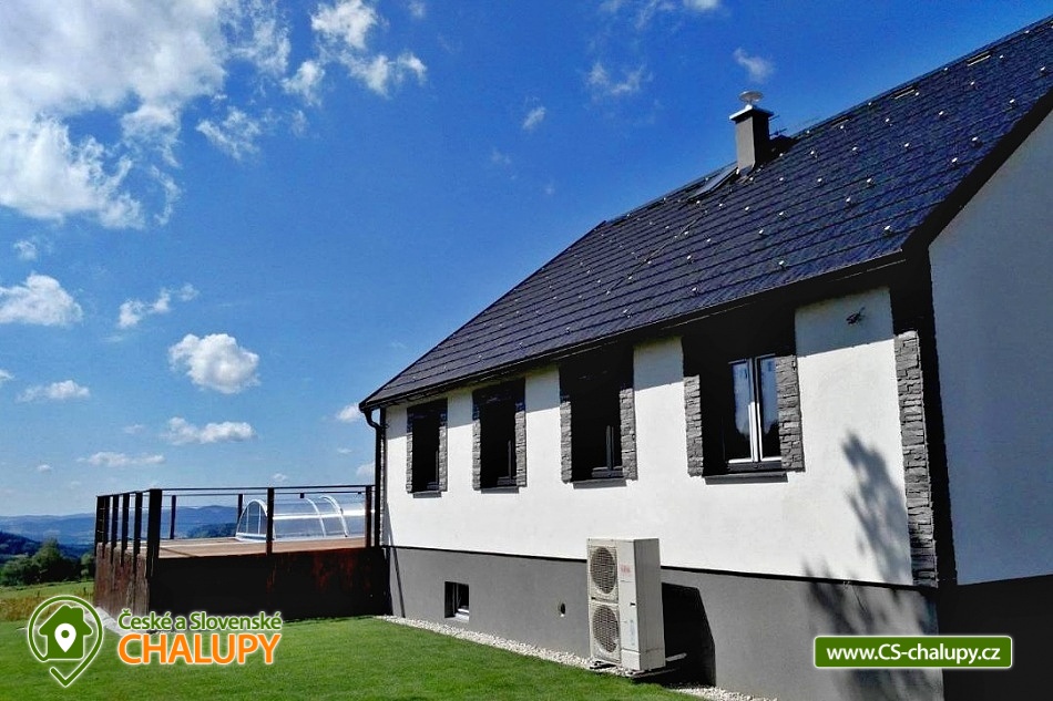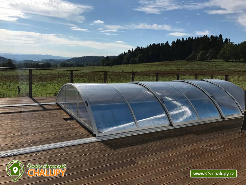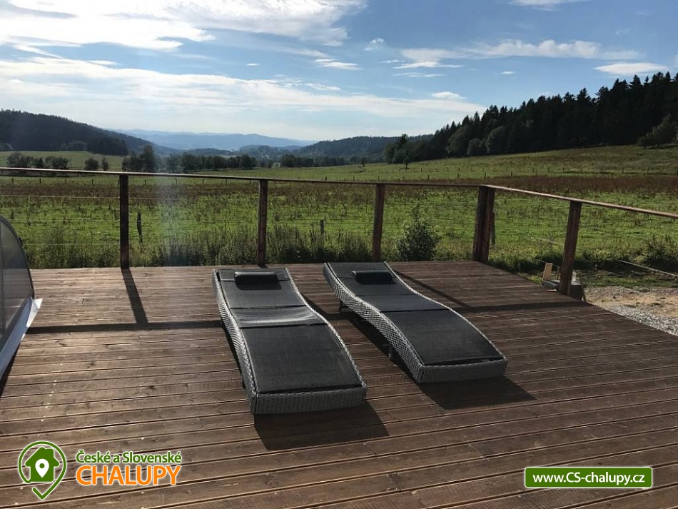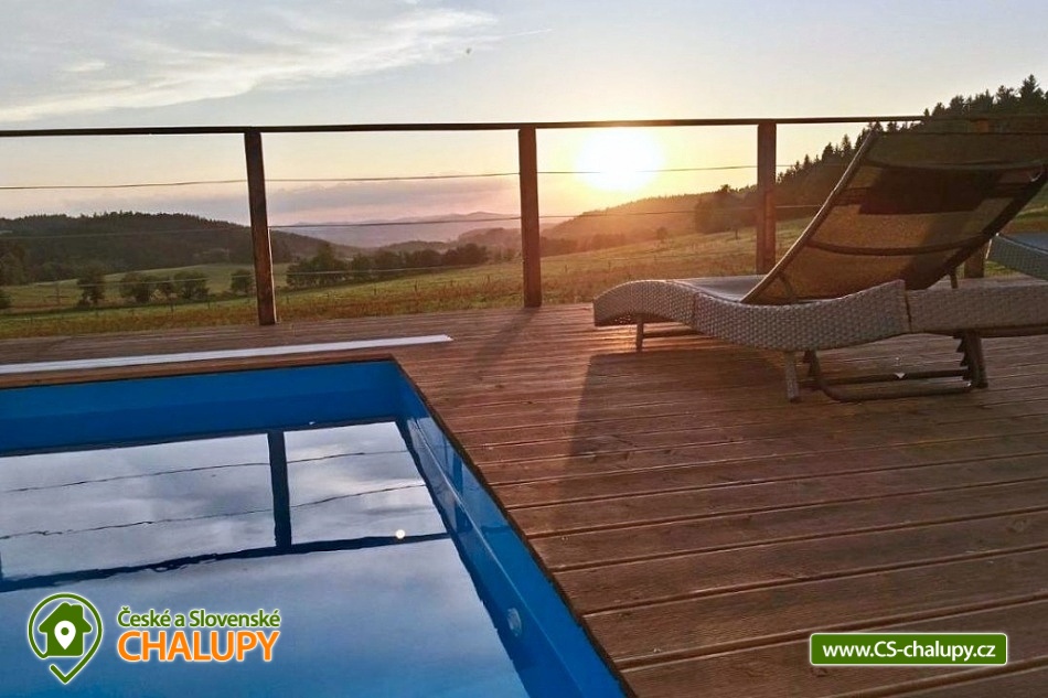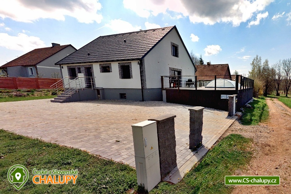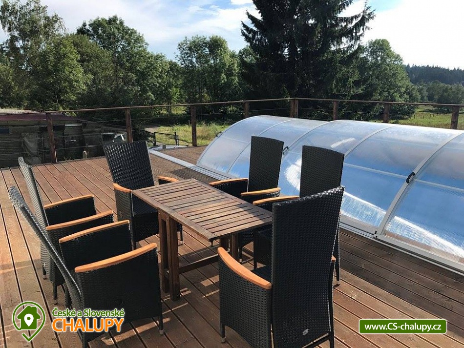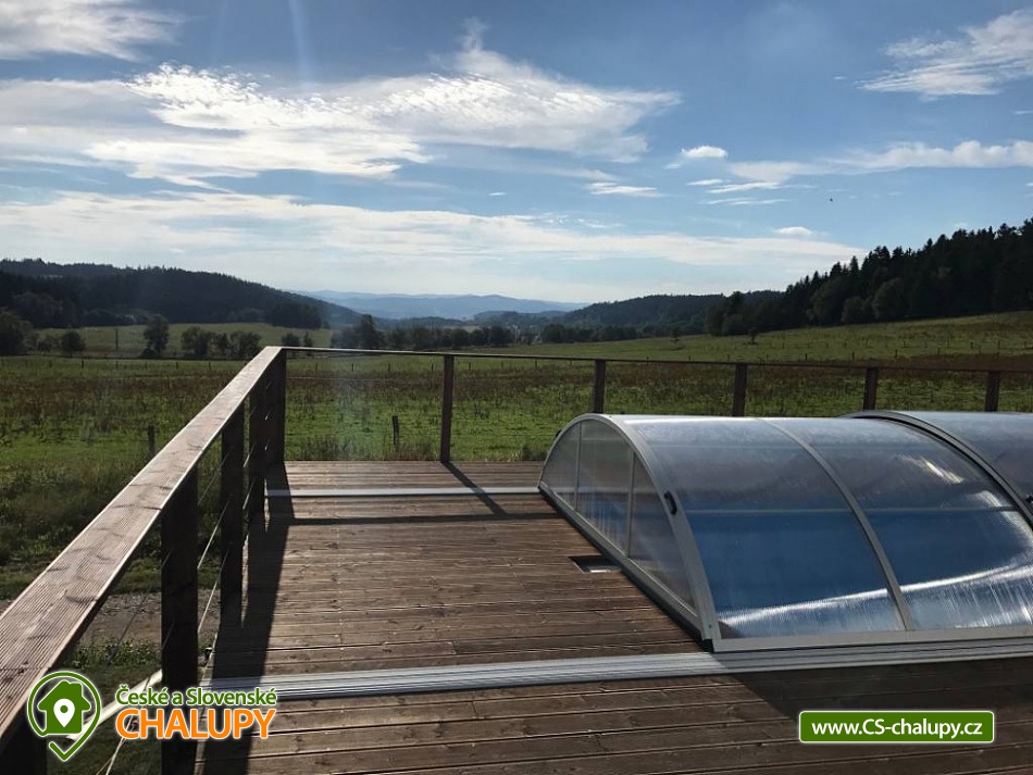 Wellness chalupa s bazénem u Lipenského jezera - Komfortní chalupa s bazénem, finskou saunou a vířivkou - Luxusní ubytování v lokalitě jižní Čechy a Šumava s obrovskou terasou a nádherným výhledem do krajiny. Kapacita chalupy je až 20 osob v 5 ložnicích. Objekt se nachází 15 minuty chůze od nejvýše položeného hradu v Čechách Vítkův Hrádek. Lipenského jezero je cca 7 minut jízdy autem od objektu. K dispozici plně vybavená kuchyně. V objektu je celkem 5 ložnic. Ložnice č. 1: 1x dvojlůžko 1x přistýlka, Ložnice č. 2: 1x dvojlůžko 1x přistýlka, Ložnice č. 3: 4x samostatná postel, Ložnice č. 4: 2x samostatná postel, 2x dvojlůžko, Ložnice č. 1: 1x dvojlůžko 1x přistýlka. Sociální zařízení zahrnuje 3x koupelnu a 4x WC. Objekt je vytápěn pomocí tepelného čerpadla, systém funguje autonomně. K dispozici je venkovní bazén na terase, finská sauna, vířivka, společenská místnost a bezplatné WiFi. Herní konzole - PS3, malý stolní tenis , stolní fotbálek. MOŽNOST ZAPŮJČENÍ ELEKTROKOL. Parkování přímo u objektu pro až 6 aut. Doporučené výlety do okolí: Svatý Tomáš - zřícenina hradu Vítkův kámen, kostel Svatého Tomáše, lovecký zámeček Lesovna. Možnosti sportovního vyžití po celém okolí a zejména v okolí Lipenského jezera, kde najdete sportovní půjčovny (kola, inliny, apod.). Inline stezka vede na trase Lipno - Frymburk (pro rodiny s dětmi). Běžecké lyžování - upravované běžecké stopy po celé Šumavě, vč. Rakouské části - nástup na tratě dle aktuální situace. Bruslení - za příznivých teplotních podmínek bruslení po zamrzlém Lipenském jezeře – bruslařská dráha nejdelší v republice. Blízká lyžařská střediska: Ski areál Lipno, ski areál Hochficht (Rakousko) - 20 km sjezdovek, ski areál Sternstein (Rakousko) - 4 km sjezdovek.