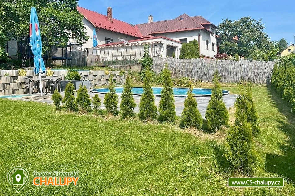 Wellness chalupa s bazénem - Žďárské Vrchy nabízí klidné a útulné ubytování v krásném prostředí Vysočiny, v blízkosti rybníků a lesů a nedaleko měst Nové Město na Moravě a Bystřice nad Pernštejnem. Připraveno je pro Vás soukromé wellness s finskou saunou, vířivkou a venkovním bazénem. Chalupa nabízí ubytování pro 11 osob ve třech ložnicích (1x třílůžková a 2x čtyřlůžková). Všechny ložnice se nacházejí v patře, kde také najdete zateplenou hrací místnost se stolním tenisem, fotbálkem a šipkami. V přízemí chalupy se nachází plně vybavená kuchyň s elektrickou troubou, indukční varnou deskou, kombinovanou lednicí, toustovačem, rychlovarnou konvicí, mikrovlnnou troubou, myčkou a kávovarem. Dále je k dispozici obývací pokoj s TV a krbovými kamny. Sociální zařízení zahrnuje dvě koupelny. Jedna koupelna je vybavena sprchovým koutem, vanou a toaletou. Druhá má sprchový kout, toaletu a bidet. K chalupě náleží zmíněné wellness, zastřešená terasa, gril a pro nejmenší trampolína, pískoviště a pěkné hračky. K dispozici Wi-Fi připojení a sklad pro kola v technické místnosti. Možnost také bezplatného zapůjčení 10 horských kol (5 pro dospělé, 5 pro děti). Objekt lze vytápět pomocí krbu. Dále je přízemí vybaveno elektrickým podlahovým topením a přímotopy. Horní pokoje je možno vytápět klimatizací. Parkování možné u chalupy. V okolí chalupy se nachází mnoho cyklistických stezek, lesů na houbaření, mnoho turistických tras a také velké množství sjezdovek. Možnosti koupání: Skalský rybník, Domanínský rybník, bazén a koupaliště Bystřice nad Perštejnem, Novoměstské lázně, přehrada Křetínka, vodní nádrž Strž, rybník Dalečín, přírodní koupaliště Nové Město na Moravě. Tipy na výlety: hrad Pernštejn, Vírská přehrada, Žďárský klášter, Novoměstské muzeum, Velké Dářko, Western city, Devět Skal, CHKO Žďárské vrchy, poutní kostel sv. Jana Nepomuckého na Zelené Hoře ve Žďáru nad Sázavou (UNESCO) nebo Zábavní Centrum Eden v Bystřici nad Pernštejnem. Blízká lyžařská střediska: Dalečín, Nové Město na Moravě, Karasín, Jimramov, Sedliště, Bystré. Těšíme se na Vás u nás.