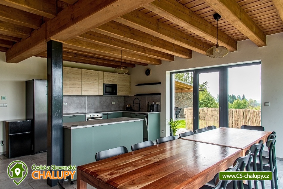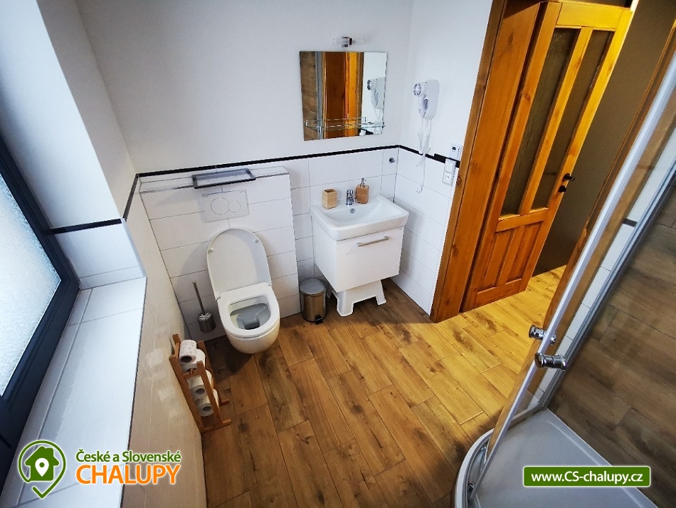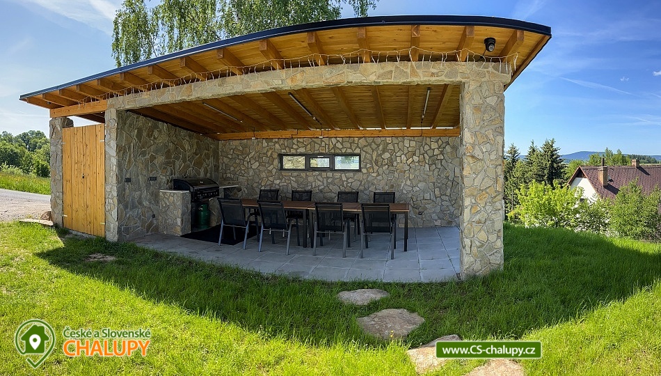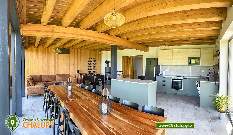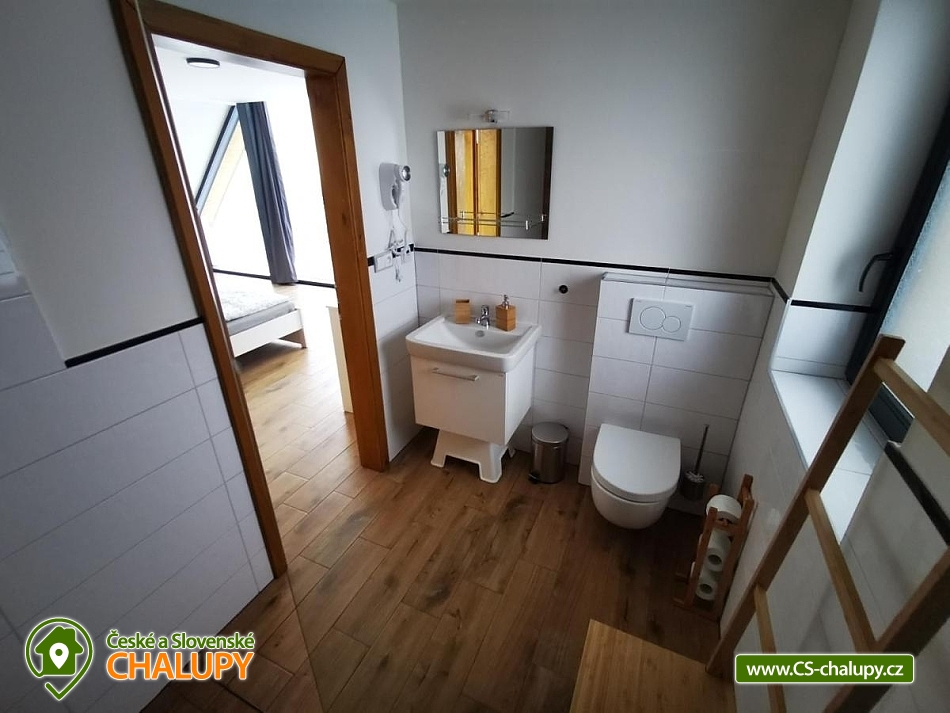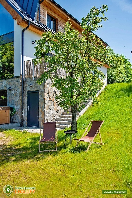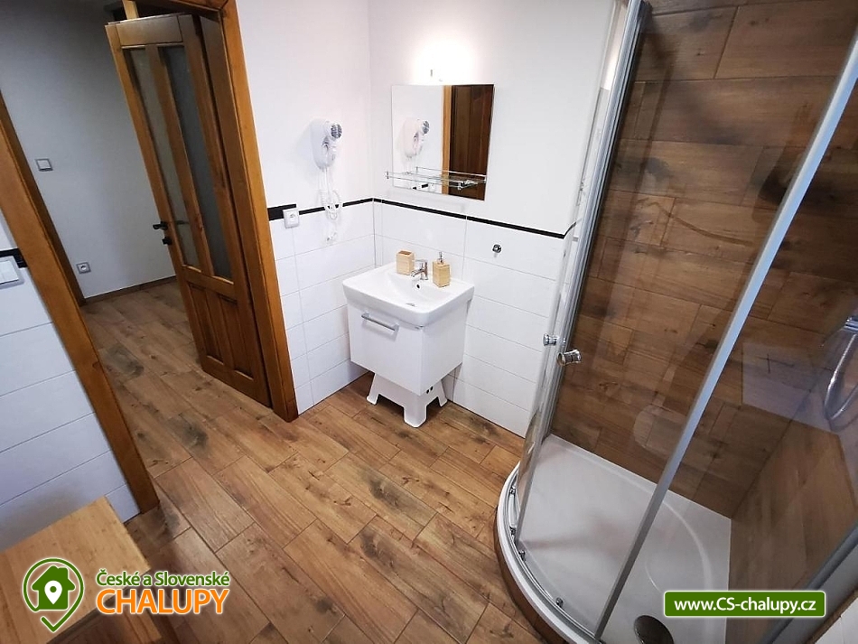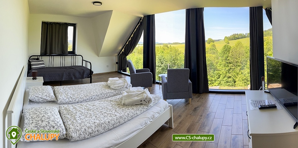 Horská wellness chata s dětským hřištěm se nachází u Větrného vrchu, 3 km od areálu Dolní Morava, který nabízí mnoho sportovních, adrenalinových a rekreačních aktivit po celý rok. Chata je vhodná pro rodiny s dětmi, party přátel a ty, co chtějí strávit aktivní dovolenou. Wellness zóna: prostorná finská sauna s odpočinkovou zónou, ochlazovací cedrový sud a luxusní švédská vířivka pro 6 osob. U nás najdete množství zážitků v létě i v zimě. Po aktivně prožitém dnu, ať už na lyžích, kolech, koloběžkách či jen po pěších túrách, si odpočinete a načerpáte energii ve wellness zóně. Chata k pronájmu poskytuje ubytování pro až 16 osob ve 4 ložnicích. Horská chata disponuje 4-mi apartmány, 1 velkou společenskou místností s plně vybavenou prostornou kuchyní a wellness zónou v přízemí objektu. Každý apartmán zahrnuje ložnici, šatnu a sprchu s WC. Každý apartmán je pro 4 osoby. Kuchyň je plně vybavená: lednička, mraznička, myčka, varná deska, digestoř, mikrovlnka, trouba na pečení, toustovač s grilem, topinkovač, veškeré nádobí na přípravu jídla a servírování. Venkovní plynový gril. Sociální zařízení: Ke každému pokoji náleží vlastní koupelna s WC, sprchovým koutem a vysoušečem vlasů. Vytápění - podlahové elektrické. Parkování na pozemku přímo u chaty, kapacita 5 aut. K dispozici jsou vína z jižní Moravy a láhvová piva k zakoupení dle ceníku. V celém objektu je k dispozici WiFi připojení. K uskladnění kol nebo lyží slouží uzamykatelná místnost přístupná zvenčí. Nechybí taktéž stylové venkovní posezení s plynovým grilem. V okolí chaty je sportovní i rodinné vyžití. Resort Dolní Morava nabízí zábavné parky pro děti, mamutí park, mamutí horská dráha, bobová dráha u Slona nebo dech beroucí stezka v oblacích. Také nejdelší visutá lávka na světě Sky Bridge s délkou 721 m vám vyrazí dech a bude pro vás zážitkem. V letním období adrenalin park, horské koloběžky, BagJump, Single trails, šlapací káry, trampolíny a spoustu dalších zážitků. V zimě jsou k dispozici skiareály - Sněžník a U Slona a ski areál Větrný Vrch. Samozřejmostí jsou dětské skiparky, půjčovny vybavení a zajištění výuky. Na své si tu přijdou i příznivci běžkařských tras a sněžnic. Pro vyznavače skialpinismu jsou organizovány různé formy výšlapů - pohodové večerní, s přespáním na horské chatě, individuální dle domluvy. Všude vás pohodlně vyvezou sedačkové lanovky. Těšíme se na Vás u nás.