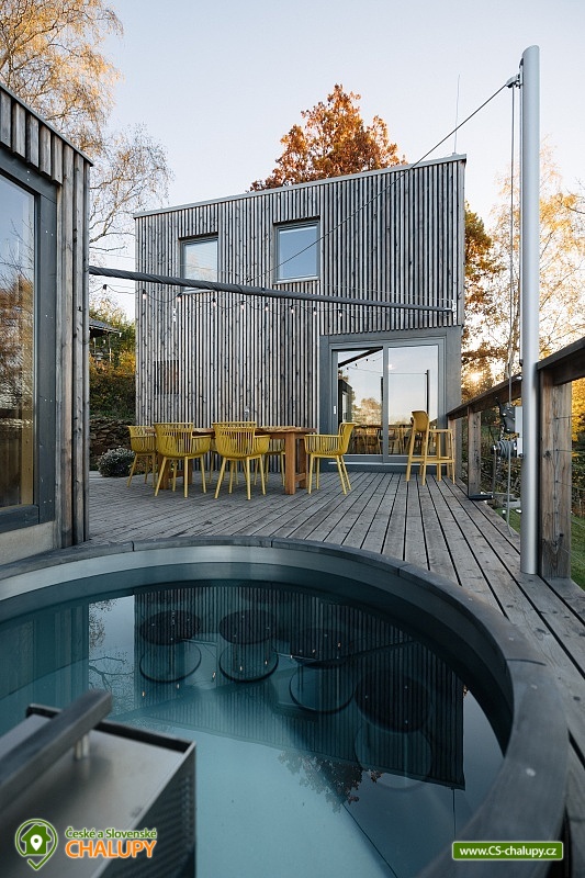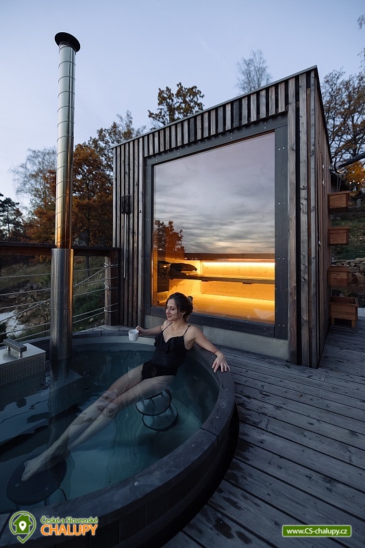 „Chatky Hygge a Lykke - Hotel Kouty - vyhřívaný koupací sud a sauna.“