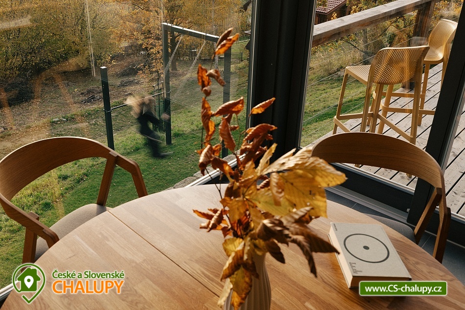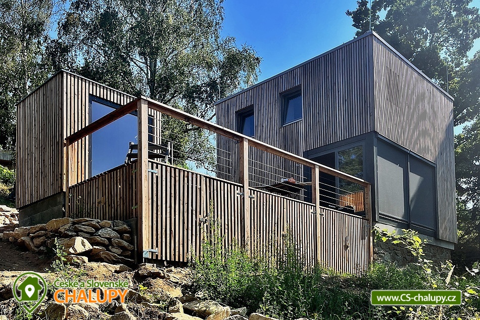 Luxusní designová glamping chata s nádherným výhledem do přírody a vlastním wellness - sauna a horký koupací sud u hradu Lipnice. Poloha chaty: jižní svah v malebné obci Lipnice nad Sázavou, u měst Havlíčkův Brod, Světlá nad Sázavou a Humpolec. Kapacita chaty je 5 osob ve dvou klimatizovaných ložnicích (1x dvoulůžková a 1x třílůžková). K dispozici je také skládací dětská postýlka. Obývacímu pokoji dominují panoramatická okna s venkovními roletami, jídelní stůl s pohodlnými židlemi a s dětskou židličkou na vyžádání. Za kamny je poležení, odkud můžete pozorovat krajinu za okny, odpočívat u knížky, či sledovat oblíbené televizní pořady (Disney+ a Oneplay Extra Sport). V plně vybaveném kuchyňském koutu naleznete nejen indukční vařič, lednici, myčku nádobí, mikrovlnnou troubu, rychlovarnou konvici, kávovar, výrobník ledu, vinotéku, remosku na pečení, ale i základní suroviny jako olej, cukr, mouku, sůl, pepř, kávu a čaje. Sociální zařízení zahrnuje koupelnu se sprchovým koutem, umyvadlem, vestavěnou pračkou a sušičkou. WC je oddělené. V celé chatě je podlahové topení, ale pro pocit pohody a příjemnou atmosféru si můžete zatopit i v kamnech. Z chaty se vychází přímo na rozlehlou terasu s barovými židličkami, venkovním jídelním stolem s křesílky a vestavěným koupacím horkým sudem. Před sluncem či mírným deštěm je terasa krytá navinovací plachtou. Naproti chatě je sauna s krásným výhledem. Od jara do podzimu je k dispozici také venkovní sprcha a plynový gril. Níže pod terasou je houpačka s hrazdou, vedle chaty také ohniště, kde si můžete opéct buřty, nebo jen tak sedět s drinkem a koukat do plamenů. Parkování cca 25 m od objektu. V okolí se můžete věnovat turistice, cykloturistice, houbaření a koupání. Tipy na výlety: Hrad Lipnice nad Sázavou, Haškův památník a hostinec U České koruny, Návštěvnické centrum Bernard, Zřícenina hradu Orlík, Zámek Světlá nad Sázavou, Skanzen Zichpil v Humpolci, Hrad Ledeč nad Sázavou, Včelí naučná stezka, Klášter Želiv. Možnosti koupání: lom Lipnice nad Sázavou, lom Trojka Lipnice, rybník Ředkovec, rybník Kachlička, Kouty - rybník Homole, koupaliště Humpolec - Žabák , Plačkovský rybník Pařezáč, lom Pavlov u Herálce, koupaliště Havličkův Brod, bazén Havlíčkův Brod, atd. V zimním období jsou k dispozici blízká lyžařská střediska Kadlečák a Melechov. Těšíme se na Vás u nás.