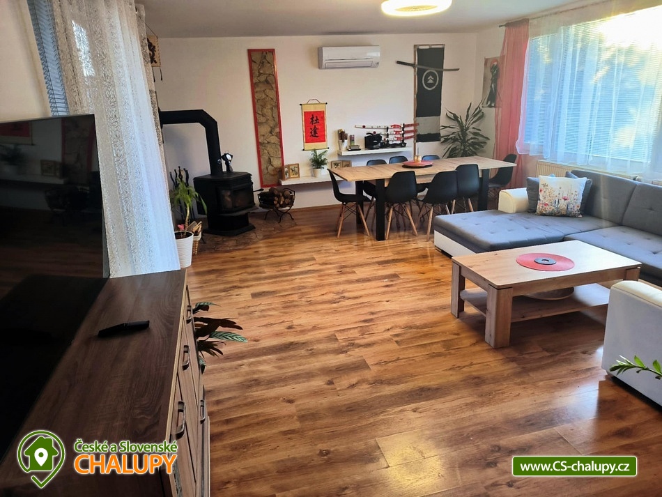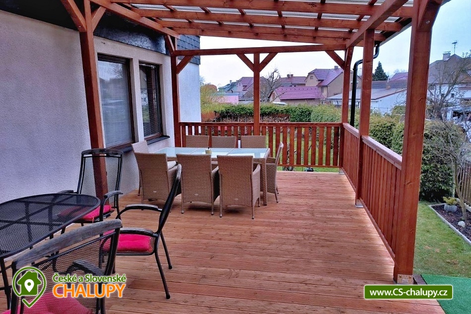 Wellness chata Kladrubské Polabí se zahradou pro chvíle odpočinku u Labětína v Řečanech nad Labem - Oblast Kladrubské Polabí je nově zapsána do světového dědictví UNESCO. Milujete koně, jízdy na kolech, pěší turistiku, nebo rádi navštěvujete atraktivní místa? Jste vždy vítáni! Chata k pronájmu poskytuje ubytování pro až 12 osob ve 3 ložnicích, čajovně a obývacím pokoji. POPIS: Ložnice 1: extra velká manželská postel, 1x jednolůžková postel. Ložnice 2: 1x manželská postel. Ložnice 3: 2x jednolůžková postel. Čajovna: 1x speciální dvoulůžková postel a 1x jednolůžková postel. Obývací pokoj: prostorná rozkládací sedačka. K dispozici plně vybavená kuchyň: běžné kuchyňské nádobí, myčka, sporák, lednička s mrazákem, varná konvice, pákový kávovar, rýžovar, toustovač, topinkovač. Vybavení obývacího pokoje: Smart TV, PlayStation 4, krbová kamna. Možnost využití nabídky čajů, kávy, vodní dýmky. Sportovní vybavení: 3x trekové kolo, vybavení pro letní hry. Možnost využití sauny, infrasauny, vířivky, masáží, sportovního vybavení a mnoho deskových her. Hosté mají k dispozici plně vybavený dům o ploše 100m2+ zahradu. Venkovní terasa, zahradní nábytek, gril, vířivka a nadzemní bazén. Sociální zařízení: 1x koupelna (sprchový kout, umyvadlo, ručníky + toaletní potřeby, WC). 1x WC včetně toaletních potřeb. Vytápění: Objekt má centrální plynové vytápění a možnost si topit v krbových kamnech. Parkování je zajištěno na pozemku domu pro dvě osobní vozidla. Výlety okolí: Cyklostezky v celé oblasti Národního hřebčína Kladruby nad Labem. Biopark Štít - komentovaná krmení zvířat. Ringelland Habrkovice s tygry sibiřskými a hrochy. Kutná Hora město UNESCO - Chrám Svaté Barbory. Chlumec nad Cidlinou Zámek Karlova Koruna a Fajnpark Hopsálkov - největší venkovní skákací centrum v republice. Muzeum Veteránů Radovesnice. Zámek Kačina. Gotický zámek Žleby. Lázeňské město Poděbrady s krásnou kolonádou a cyklotrasou podél řeky až do Kolína. Lázně Bohdaneč a město Pardubice - aquapark, zámek, multikina, dostihové závodiště, plochá dráha - Zlatá přilba. Těšíme se na Vás u nás.
