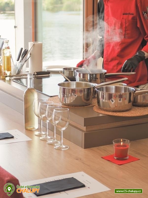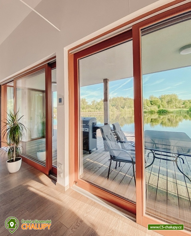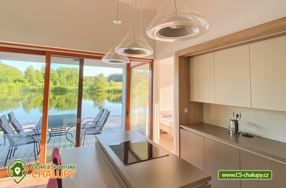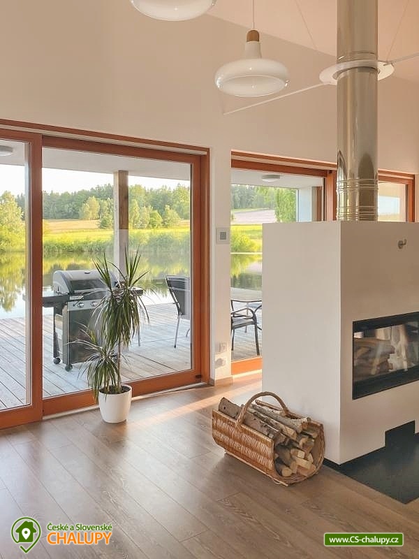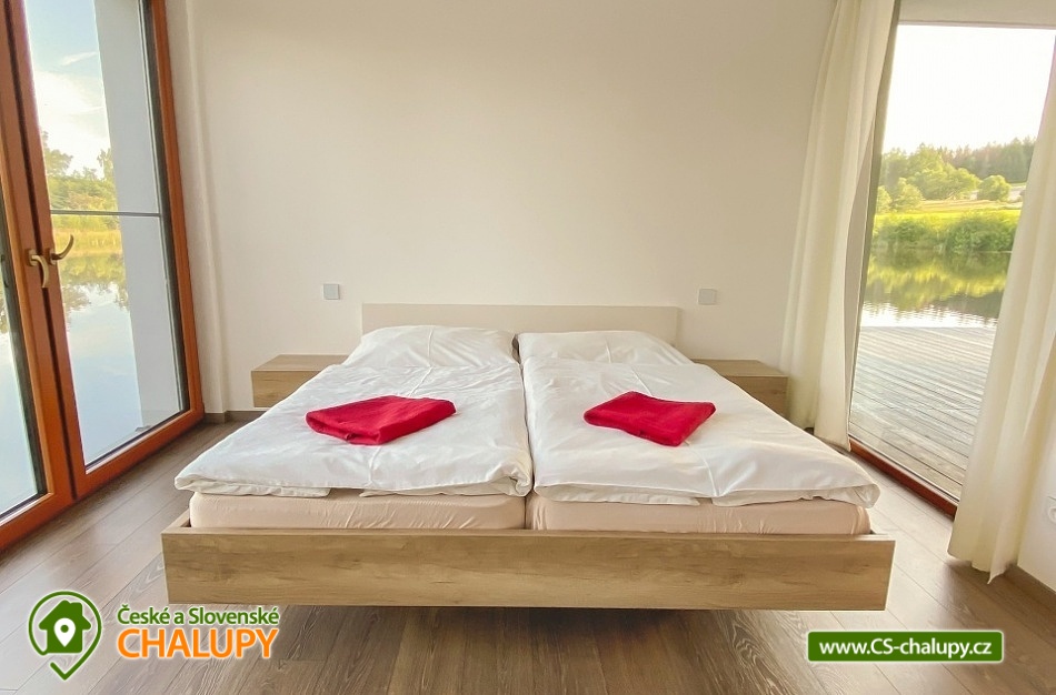 Wellness chata na vodní hladině - Vysočina. Zážitkové ubytování - Užijte si odpočinek v ekologickém, plně vybaveném luxusním domě stojícím na hladině rybníka a obklopeném krásnou přírodou Vysočiny. Nikdo vás zde nebude rušit, společnost vám bude dělat jen klidná hladina rybníka a tlumený zvuk větru. Těšit se můžete také na relax ve finské sauně nebo v horkém sudu s masážními tryskami. V rybníce u domu si můžete zaplavat anebo rybařit. Chata poskytuje komfortní ubytování pro 4 osoby. K dispozici jsou dvě prosvětlené ložnice, ve kterých budete uléhat do prostorných postelí a při vstávání vám bude dělat společnost dechberoucí výhled přes hladinu a probouzející se příroda. Společné chvíle můžete trávit v obývací místnosti s krbem, kde je možné poslouchat rádio připojit se ke Spotify, využít internetového Wi-Fi připojení, číst knihu anebo jen sledovat, jak slunce mizí za obzorem. K dispozici je také TV s Netflixem a deskové hry. Srdcem domu je plně vybavená kuchyně, včetně spotřebičů a nádobí. Pro milovníky kávy je k dispozici pákový kávovar, překapávač kávy, moka konvička či french press. Pro ty, co raději čaj je zde připravená rychlovarná konvice s nastavitelnou teplotou pro různé čaje. V kuchyni si můžete vařit sami nebo po domluvě si můžete vychutnat menu od soukromého kuchaře. Sociální zařízení zahrnuje jednu koupelnu se sprchový koutem s masážními tryskami nebo vanou. Samozřejmostí jsou připravené osušky, ručníky, fén a veškeré hygienické vybavení, včetně přírodní kosmetiky značky Alverde. Koupelna dále pokračuje vstupem do finské sauny, která je k dispozici neomezeně. V domě je k dispozici také pračka se sušičkou a ekologické prací prostředky. Volné chvíle pohody si můžete užít na terase s venkovním posezením a plynovým grilem. Po schůdkách lze sestoupit do rybníka nebo relaxovat v teplé vodě v celoročně využitelného sudu s masážními tryskami a slanou vodou. Vedle domu je také posezení s grilem na dřevo či dřevěné uhlí a s grilovacím kamenem. V letních měsících můžete využít bylinkovou zahrádku a ochutnávat drobné ovoce. Pro nadšence do sportu jsou zde k zapůjčení základní fitness pomůcky, jízdní kola a paddleboardy. Parkovat lze přímo u objektu. V okolí domu možnost turistiky, cykloturistiky, koupání, rybaření a houbaření. Mezi možnosti koupání patří např.: Pilský rybník Batelov, Lom Horní Cerekev, rybník Nadýmač, rybník Malý Pařezitý, lom Čenkov, lom Řídelov, rybník Velký Pařezitý, rybník Klechtavec, Dolnohuťský rybník, rybník Roštýn, rybník Budín, rybník Maráz, koupaliště Vyskytná, atd. K výletům v okolí lákají Počátky, zámek v Žirovnici, hrad Roštejn, Jihlava, Telč nebo Pelhřimov. Těšíme se na Vás u nás.