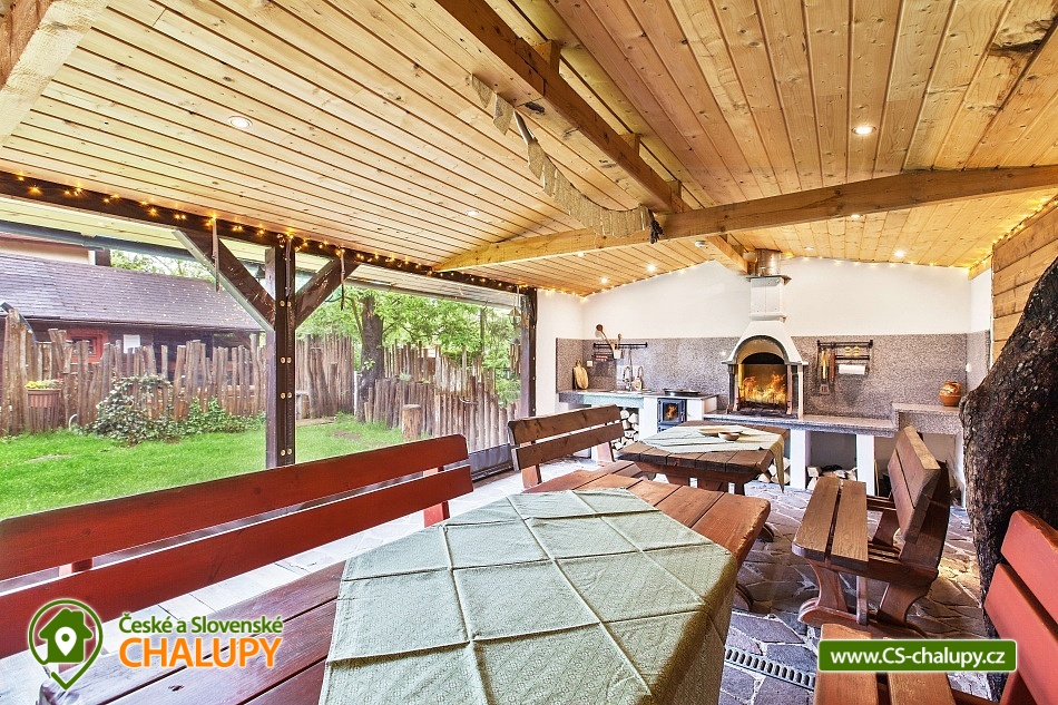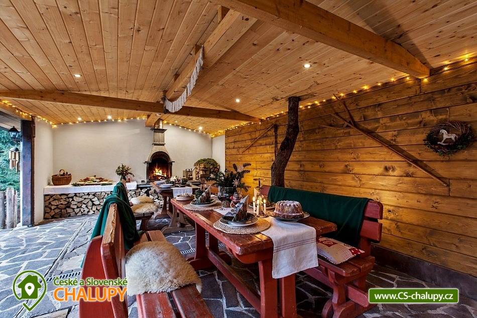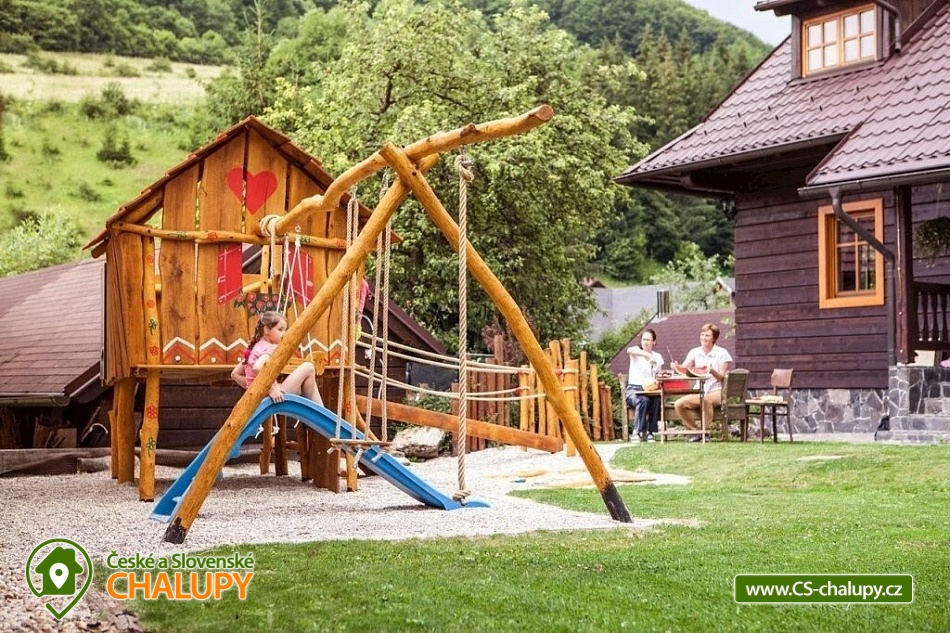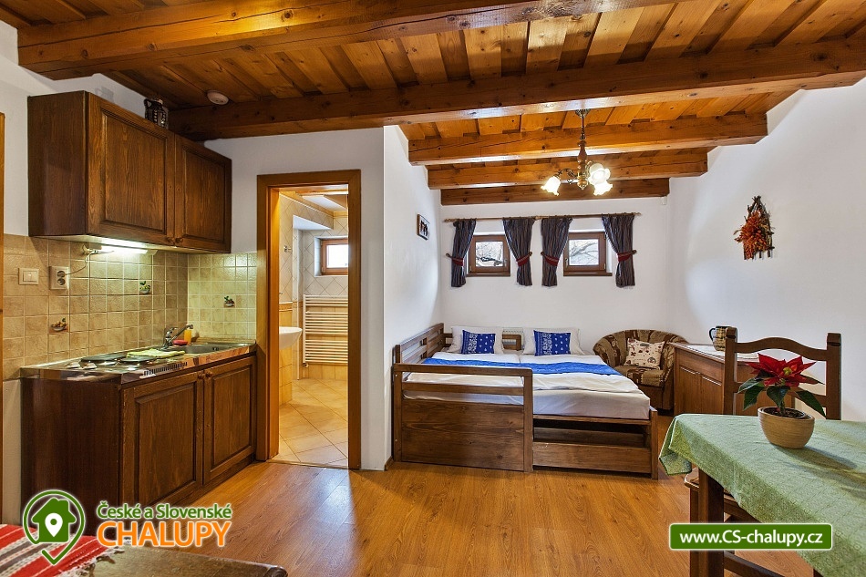 Wellness chata Nízké Tatry (termální bazén, sauna, koupací káď, vířivka, dětské hřiště a altán) se nachází nedaleko Bystrianské jeskyně na okraji obce Mýto pod Ďumbierom.. Chata nabízí ubytování: 6 apartmánů pro až 28 osob (z toho je 14 přistýlek) v 7 ložnicích, (6 koupelen, 6x WC). Ubytování je k dispozici jen pro Vás. POPIS: Apartmán č.1 (max. 4 osoby) v přízemí: 1x Ložnice: 1x manželská postel, 1x Obývací prostor: 2x přistýlka, Jídelní posezení, Televizor, Gauč, Satelit, 1x Kuchyňský kout - Lednička, Elektrický vařič (dvojplotna) a 1x Koupelna s toaletou. Apartmán č.2 (max. 4 osoby) v přízemí: 1x Ložnice: 1x manželská postel, 1x Obývací prostor: 2x přistýlka, Jídelní posezení, Televizor, Gauč, Satelit, 1x Kuchyňský kout - Lednička, Elektrický vařič (dvojplotna) a 1x Koupelna s toaletou. Apartmán č.3 (max. 4 osoby) v podkroví: 1x Ložnice: 1x manželská postel, 1x Obývací pokoj: 2x přistýlka, 1x Kuchyňský kout - Lednička, Elektrický vařič (dvojplotna) a 1x Koupelna s toaletou. Apartmán č.4 (max. 5 osob) v podkroví: 1x Ložnice: 1x manželská postel, 1x přistýlka, 1x Obývací prostor: 2x přistýlka, 1x Kuchyňský kout - Lednička, Elektrický vařič (dvojplotna) a 1x Koupelna s toaletou. Apartmán č.5 (max. 5 osob) v přízemí s vlastním vchodem: 1x Ložnice: 1x manželská postel, 1x přistýlka, 1x Obývací pokoj: 2x přistýlka, Krb / Kamna, Televizor, Gauč, 1x Kuchyňský kout - Lednička, Rychlovarná konvice, Elektrický vařič (dvojplotna) a 1x Koupelna s toaletou. Apartmán č.6 (max. 6 osob) v patře, Vlastní vchod do budovy, Internet (WiFi), 1x Ložnice: 1x manželská postel, 1x Ložnice: 2x postel, 1x Kuchyň: 2x přistýlka, Lednička, Mikrovlnná trouba, Rychlovarná konvice, Elektrický vařič (dvojplotna) a 1x Koupelna s toaletou. Společné prostory: 1x Společenská místnost (přízemí) - Jídelní posezení, Společenské hry, CD přehrávač, Krb / Kamna, DVD přehrávač, Televizor, Gauč, Rádio. 1x Kuchyň: Lednička, Elektrická trouba, Kávovar, Elektrický sporák, Mikrovlnná trouba, Rychlovarná konvice, Televizor, Topinkovač, Toastovač, Myčka nádobí a 1x Wellness (Masáže, Vířivka, Sauna). Pobyt se psem je povolen za poplatek. Možno objednat také snídaně, obědy, večeře, polopenze a plné penze. K dispozici je venkovní bazén, termální bazén, sauna, koupací káď, masáže a vířivka. Venku se nachází ohniště, altánek, venkovní posezení, vnější krb, terasa, kotlík, zahradní houpačka a gril. Ubytování je vhodné pro rodiny s dětmi, k dispozici jsou dětské hřiště, dětský bazén, dětský koutek, hračky, dětská židle, dětská postýlka, prolézačka, skluzavka, pískoviště a dětská houpačka. Pozemek je oplocený. Parkování je možné pro 12 aut při objektu. Zalyžovat si můžete v lyžařském středisku Mýto Ski Centrum (600 m), nejbližší koupání je Termal Raj (45,2 km). V blízkosti si můžete prohlédnout jeskyni Bystrianská jeskyně (2,8 km) nebo Ľupčianský hrad (31,4 km).