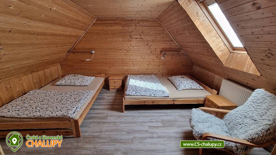 Wellness chata (vířivka + sauna) se nachází uprostřed lesů přímo u písečné pláže přehradní nádrže Na Jahodné v rekreační oblasti Dolní Bušínov, poloha 8 km od města Zábřeh.. Chata je vhodná pro rodiny s dětmi, nachází se přímo u přehrady s písčitou pláží (pozvolný vstup do vody). Chata k pronajmutí poskytuje ubytování pro až 6 osob ve 2 ložnicích (max. 4 dospělé osoby + 2 děti). Přízemí: obývací místnost s TV, rozkládací sedačka, kuchyň, WC + koupelna. 1. patro: 2 ložnice (jedna průchozí) v každé 2 dvoulůžkové postele. Sociální zařízení: Koupelna: sprchový kout + toaleta. Jelikož je v koupelně málo místa, nebylo kam umístit umyvadlo - zuby si tak je nutno čistit v kuchyni (děkujeme za pochopení). Vytápění: Krbová kamna s výměníkem nebo elektrické konvektory v každé místnosti. K dispozici: Vybavená kuchyň, k zapůjčení plynový gril, výčepní sestava na pivo (možnost zajištění soudku piva - nutno objednat min. týden předem), obývací místnost - TV, satelit, wifi připojení. Kuchyň: indukční vařič dvouplotýnkový, multifunkční mikrovlnná trouba, rychlovarná konvice, kávovar, lednice s mrazákem, hrnce, talíře, sklenice, příbory. Dále k dispozici: Wellness (vířivka + sauna) je ve vedlejší chatě se samostatným vchodem - 10 m od chaty, dále trampolína a stůl na stolní tenis. Parkování přímo u chaty, max. 2 auta. Zapíjení svobody a podobné akce spojené s hlasitou reprodukovanou hudbou v době nočního klidu na venkovní terase je zakázáno (děkujeme za pochopení). Občerstvení u přehrady zajišťuje kiosek (pivo, limo, nanuky - pouze o prázdninách). Rekreační oblast je vhodná k pěší turistice, cykloturistice, k houbaření, chytání ryb. V celém areálu Dolního Bušínova není telefonní signál (v chatě máme k dispozici WiFi volání). Pro fanoušky outdoorových sportů je k dispozici nedaleký adrenalin park (půjčovna koloběžek, lezecká věž, bungee trampolína, skákací boty, lukostřelnice, minigolf), antukové kurty, beachvolejbalové hřiště a nechybí ani dětské hřiště s prolézacím hradem, houpačky. Možnost zapůjčení tenisových raket - v blízkosti multifunkční hřiště. Možnosti koupání: přehrada Dolní Bušínov - Na Jahodné, horní nádrž Krchleby, bazén Zábřeh, koupaliště Morava camp, rybník Dubicko - Hosena, plavecký bazén Mohelnice a pískovna Moravičanské jezero. Nejbližší lyžařské středisko: Buková hora, 30 min. jízdy autem. Těšíme se na Vás u nás.