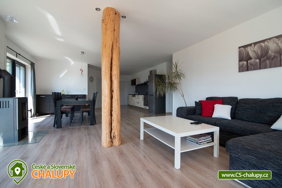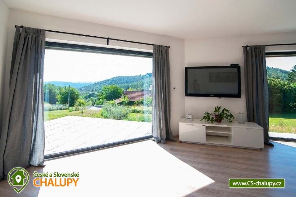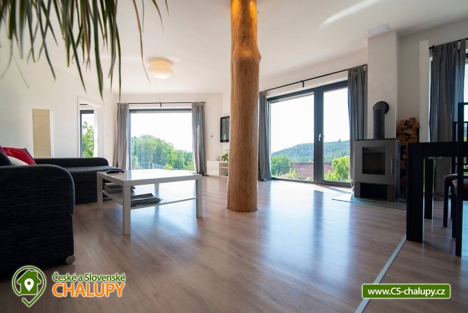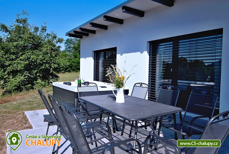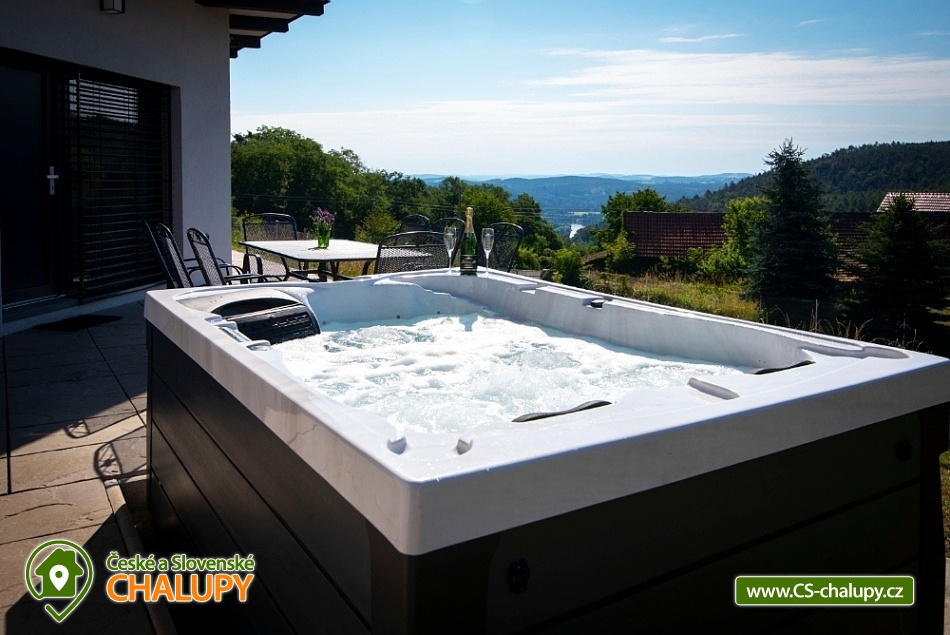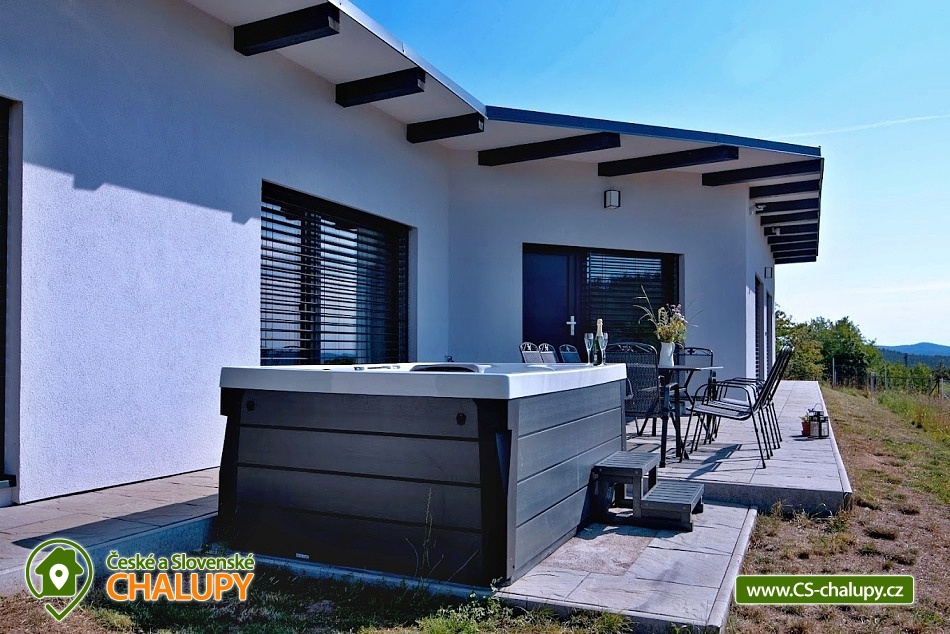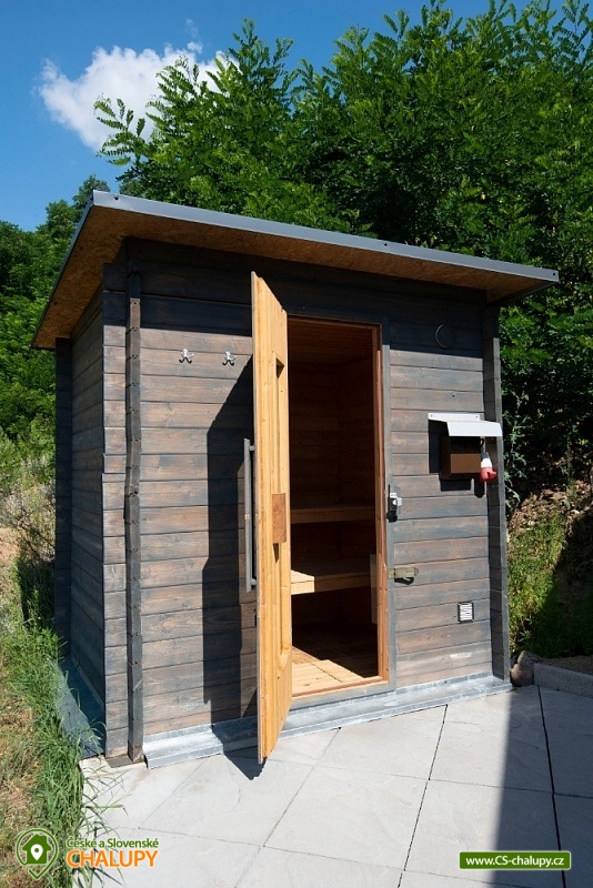 Wellness chata (vířivka a sauna) u vodní nádrže Slapy nedaleko vyhlášeného Hříměždického lomu. Chata s venkovní vířivkou a saunou se nachází pouhý 1 km od břehu vodní nádrže Slapy a nabízí ubytování pro až 7 osob ve 3 ložnicích. Objekt je na velmi atraktivním klidném místě 50 km od Prahy na pozemku o velikosti 5 000m2 a do 2 km od vyhlášeného zatopeného Hříměždického lomu (např. akce High Jump). Chata má obytnou plochu 170 m2 o dispozici 4 + kk. K dispozici plně vybavená kuchyně: varná deska, trouba, mikrovlnná trouba a myčka na nádobí. Sociální zařízení zahrnuje koupelnu se sprchovým koutem, bidetem a WC, k dispozici i druhé samostatné WC. V objektu je Wi-Fi připojení k internetu zdarma. Na zahradě je k dispozici vířivka pro 3 osoby, sauna pro až 5 osob, dále dětské hřiště a 2 terasy s posezením: jedna terasa je orientovaná na východ, druhá na západ slunce. Z domu je překrásný výhled do slapského údolí a kraje středního Povltaví (nejvzdálenější bod na horizontu je vzdálen 50 km). Nízkoenergetická nemovitost je umístěná na jižním svahu a je vybavena elektrickým podlahovým topením. U domu prochází žlutá turistická značka. Do 3 km od objektu se nacházejí vyhlášené Nečínské a Hříměždické zatopené lomy ke koupání. Lze provozovat turistiku a houbaření na kouzelných hřebenech okolních kopců s výhledem na Slapskou přehradu. Desítky kilometrů do okolí se táhnou nádherné borové lesy, kterými můžete projíždět i na kolech. Poblíž jsou golfová hřiště Slapy, Konopiště a Líšnice u Prahy. K návštěvě zvou zámky Dobříš, Orlík či romantický hrad Zvíkov a v létě diskotéky na Slapských plážích. Celoročně můžete navštívit také 10 km vzdálený překážkový areál ve stylu pevnosti Boyard TEP Faktor, který nabízí aktivní zábavu pro celou rodinu. Dále navštivte Hornické muzeum zlata v Novém Kníně, lanové centrum Měřín, rozhlednu Veselý kopec Mokrsko s výhledy na slapskou přehradu nebo aquacentrum v Příbrami.