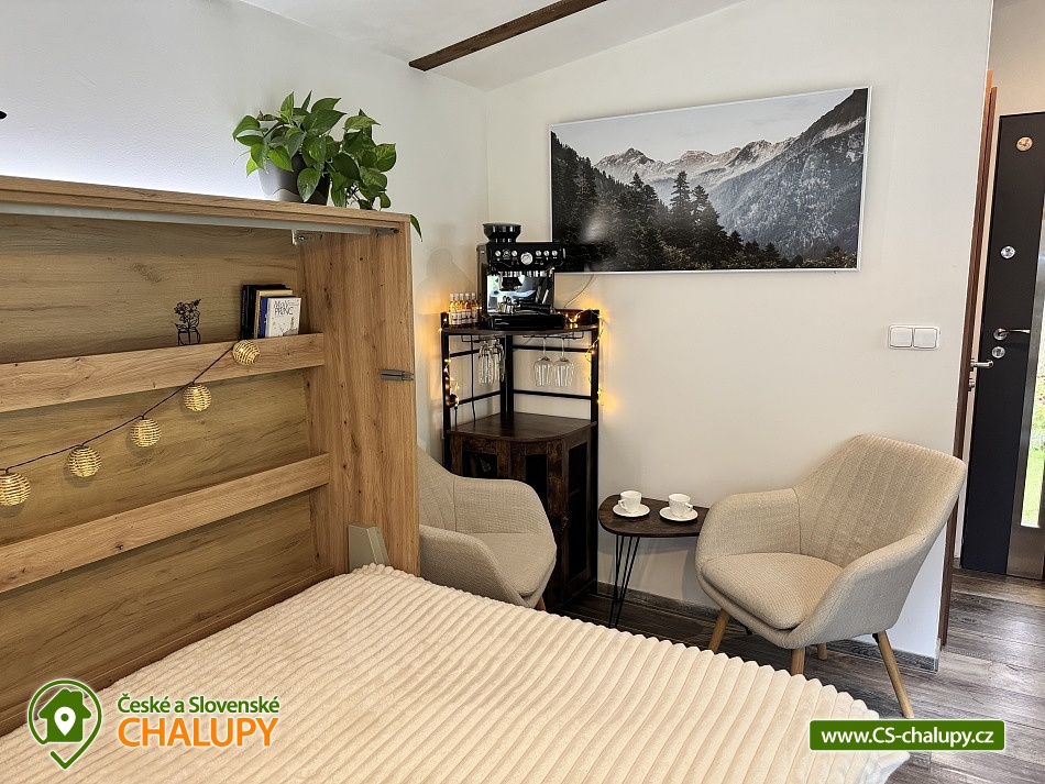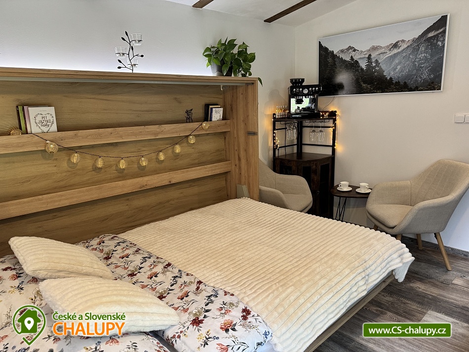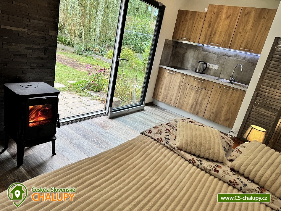 Wellness chata u lesa - Křivoklátsko - Beroun se nachází v obci Chyňava, nedaleko měst Beroun, Kladno a Hostivice. Chillzóna u Medojeda je útulná stylová chata, která leží na okraji Křivoklátských lesů a nabízí klidné ubytování pro 2 osoby. K dispozici je jedna obytná místnost s rozkládací pohovkou pro 2 osoby, krbová kamna, vybavený kuchyňský kout (nádobí, rychlovarná konvice, varná deska, lednice, kávovar), samoobslužný bar s kvalitním pitím a drobnými pochutinami, které zpříjemní každý večer. Pro milovníky kávy je připraven kávovar, díky kterému si mohou vychutnat šálek prvotřídní kávy kdykoli během dne. Sociální zařízení zahrnuje koupelnu se sprchovým koutem a WC. K dispozici je také sudová sauna a koupací sud s výhledem do zahrady, které dotváří dokonalý wellness zážitek pod širým nebem. K dispozici máte navíc gril, ohniště, zahradní houpačku i terasu s posezením a možností jejího překrytí. Na pozemku je zahradní uzamykatelný domek, ve kterém jsou odloženy všechny potřebné pomůcky ke grilování a opékání. V chatě je také Wi-Fi připojení. Parkování je možné přímo u objektu, kam se dostanete po lesní cestě. Pokud pojedete ze směru od Berouna, navigace ukazuje odbočku mezi pole. Tato příjezdová cesta je ale neudržovaná a nedoporučujeme tam jezdit. Je třeba jet spodem od Dědkova Mlýna viz foto a instrukce v galerii. V okolí Chillzóny je možnost turistiky, cykloturistiky a houbaření. Možnosti koupání: bazén Kladno, aquapark Beroun, koupaliště Kladno - u Sletiště, aquapark Kladno. Tipy na výlety: rozhledna Lhotka, hrad a zoopark Karlštejn, hrad Křivoklát, městské medvědárium v Berouně, zřícenina hradu Tetín, vápencový lom Alkazar, Bubovické vodopády, vápencové lomy Amerika. Těšíme se na Vás u nás.
