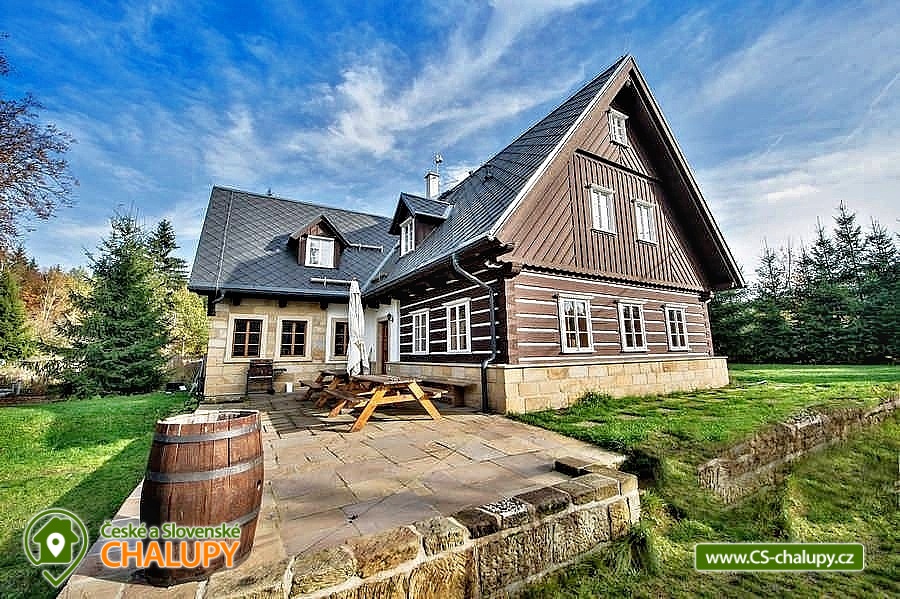 Wellness roubenka s kachlovými kamny v Národním parku České Švýcarsko u hranice s CHKLO Lužické hory. Stylová chalupa poskytuje ubytování pro až 22 osob v 7 ložnicích. Ideální pro rodinné pobyty s dětmi. Vybavená kuchyně (myčka, 2x sklokeramická deska, el. trouba, 2x lednička, 2x mikrovlnná trouba, rychlovarné konvice, kávovar, kuch. nádobí) je součástí společné místnosti s kachlovými kamny, pecí na ležení, smart TV a sezením. Pokoje: 7 pokojů po 4 lůžkách s možností využít další přídavná lůžka ve dvou z uvedených pokojů pro 5 - ti členné rodiny. Čtyři z uvedených pokojů jsou apartmánového typu, tj. 2+2. Sociální zařízení: Sociální zařízení na každém ze 7 pokojů (WC, sprchový kout, umyvadlo). Vytápění: Elektrický kotel, Tepelné čerpadlo vzduch - voda, Kachlová kamna s teplovodním výměníkem. Parkování přímo u objektu. Vybavení chalupy - Vnitřní vybavení: Hlavní společenská místnost 8x8m s kuchyní a sezením. Pivnice. Úschovna kol/dětský koutek. Vnější vybavení: Venkovní terasa s grilem. Volejbalové travnaté hřiště. Fotbalové travnaté hřiště 30x15m. Parkoviště. Roubenka je vhodná pro turisty i cykloturisty, okolí je protkáno hustou sítí značených tras. V zimě si na své přijdou i milovníci zimních sportů. Roubenka Doubice se nachází v národním parku České Švýcarsko, který byl založen za účelem ochrany unikátní pískovcové krajiny a přilehlých biotopů. Navštívit zde můžete mnoho skalních útvarů, např. známou Pravčickou bránu se svým výletním zámečkem Sokolí hnízdo se stylovou restaurací. Od něj vedou schodiště a upravené stezky na skalní plošiny, kde se Vám naskytnou překrásné výhledy do okolí. Vynechat nemůžete ani blízké Jetřichovické skalní město, kde na vás čeká třeba známá Mariina vyhlídka nebo zřícenina hradu Falkenštejn. Za výlet určitě stojí i Hřensko, po jehož soutěskách se můžete nechat svézt na lodičkách.