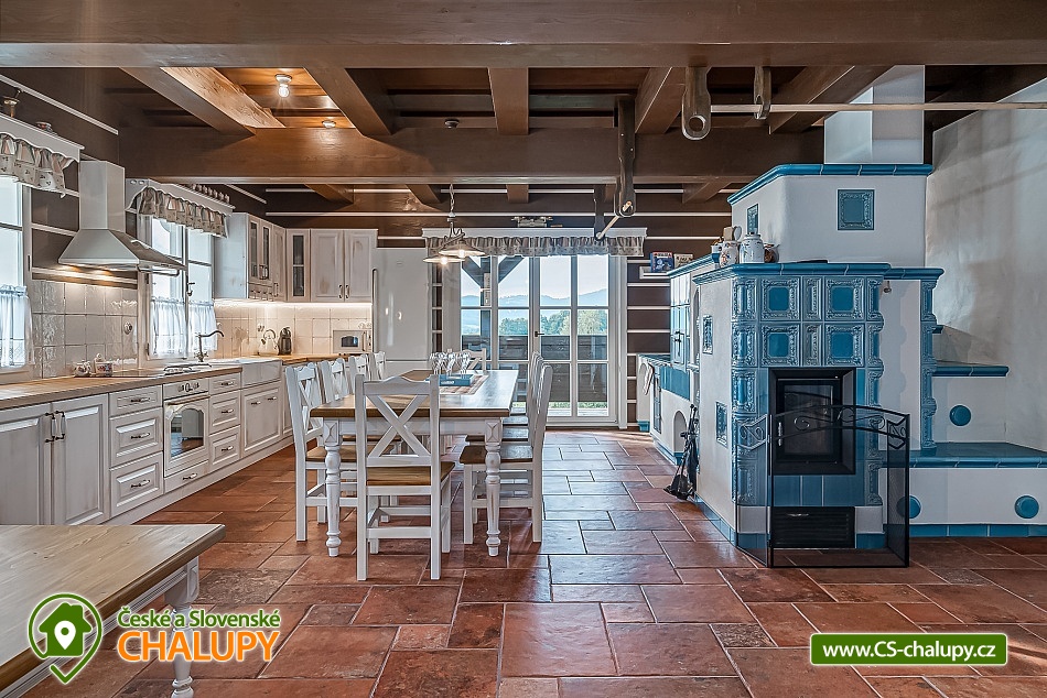 Wellness Roubenka (finská sauna a vířivka) s venkovním bazénem (léto) nabízí dokonalý únik do klidného a malebného prostředí. Stylový dřevěná chalupa je ideální pro ty, kteří hledají relaxaci a odpočinek v přírodě. Nachází se v malebné krajině, která poskytuje nádherné výhledy a příležitosti k různým outdoorovým aktivitám. Interiér roubené chalupy je vkusně zařízen s důrazem na komfort a pohodlí návštěvníků. Je vybavena moderními vymoženostmi, které zajišťují příjemný pobyt, a zároveň si uchovává tradiční kouzlo dřevěné architektury. Roubenka Na Vyhlídce poskytuje ubytování pro až 14 osob ve čtyřech ložnicích, plus možnost přistýlky pro jednoho dospělého nebo dvě děti na ležení za kachlovými kamny. POPIS: Ložnice č. 1 a č. 2: manželská postel a samostatné lůžko, dvě komody. Ložnice č. 3 a č. 4: manželská postel a dvoupatrová postel, velká šatní skříň a komoda. Společenská místnost zahrnuje obývací část, kuchyni s velkým jídelním stolem, kachlovými kamny s automatickou regulací hoření, sporákem, troubou a ležením. Kuchyň je plně vybavena (myčka, indukční varná deska, trouba, varná konvice, mikrovlnná trouba, lednice s mrazákem, automatický kávovar). Wellness místnost nabízí vířivku pro 6 osob, finskou saunu pro 3 osoby a sprchový kout s ochlazovacím vědrem. Přístup na zastřešenou terasu je možný z obou místností přes francouzská okna. Dále je k dispozici samostatná toaleta s umyvadlem, technická místnost s pračkou, sušičkou a otopným žebříkem na vysoušení obuvi. K dispozici je WIFI, plynový gril, ohniště, finská sauna, vířivka, smart TV, dětské i společenské hry, zastřešená terasa s posezením a venkovní bazén. V ceně je zahrnuto povlečení a ručníky, dětská postýlka a krmící židlička k dispozici. Sociální zařízení: Chalupa disponuje hlavní koupelnou v patře s volně stojící vanou, sprchovým koutem, dvěma umyvadly a otopným žebříkem. Další sprchový kout je součástí wellness místnosti. V každém patře je samostatná toaleta s umyvadlem. Vytápění zajišťují kachlová kamna na dřevo a teplovodní podlahové vytápění v přízemí pomocí tepelného čerpadla, v patře elektrické přímotopy. Autem dojedete až k chalupě, parkování pro až čtyři osobní automobily před chalupou. Region kolem Velkých Losin, Loučné nad Desnou, Koutů nad Desnou a Červenohorského sedla je bohatý na přírodní i kulturní krásy. Doporučujeme navštívit termální lázně ve Velkých Losinách, které jsou známé pro své léčivé účinky a příjemné relaxační procedury. Nezapomeňte si prohlédnout i renesanční zámek Velké Losiny a historickou ruční papírnu, kde se tradičním způsobem vyrábí papír. Pro milovníky přírody a turistiky je oblast Jeseníků doslova rájem. Můžete se vydat na pěší túry po hřebenech hor, navštívit vodopády nebo se projet na kole po značených cyklostezkách. Červenohorské sedlo je ideálním výchozím bodem pro horské túry s dechberoucími výhledy. V zimním období je tato oblast vyhledávaným cílem pro lyžaře a snowboardisty díky moderním lyžařským střediskům s kvalitními sjezdovkami. Kouty nad Desnou a okolí nabízejí skvělé podmínky pro zimní sporty. Ať už plánujete odpočinkový pobyt plný wellness, nebo aktivní dovolenou v přírodě, roubenka Na Vyhlídce a její okolí vám nabídnou nezapomenutelné zážitky a důvody k návratu. Těšíme se na Vás u nás.