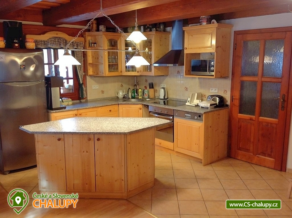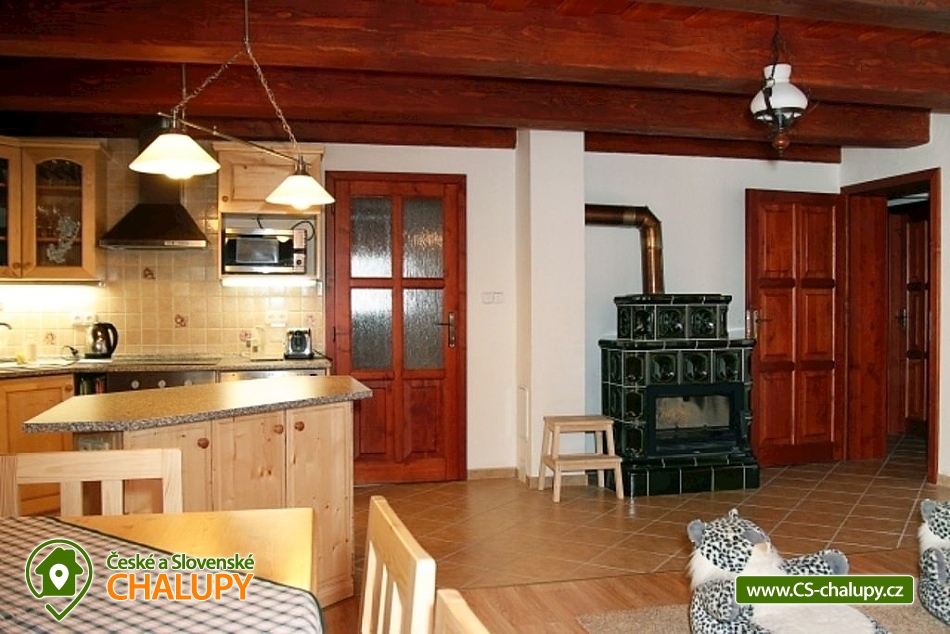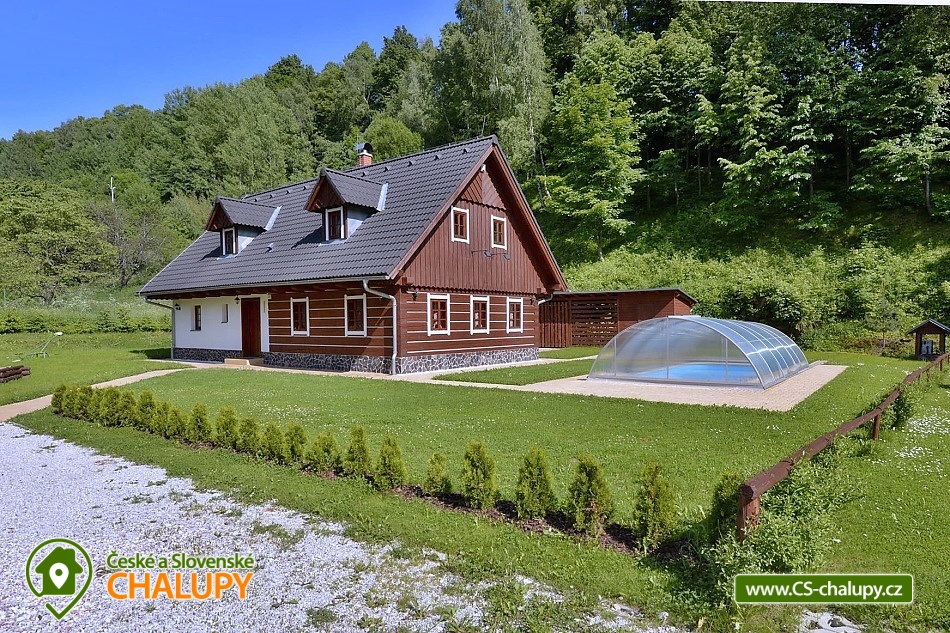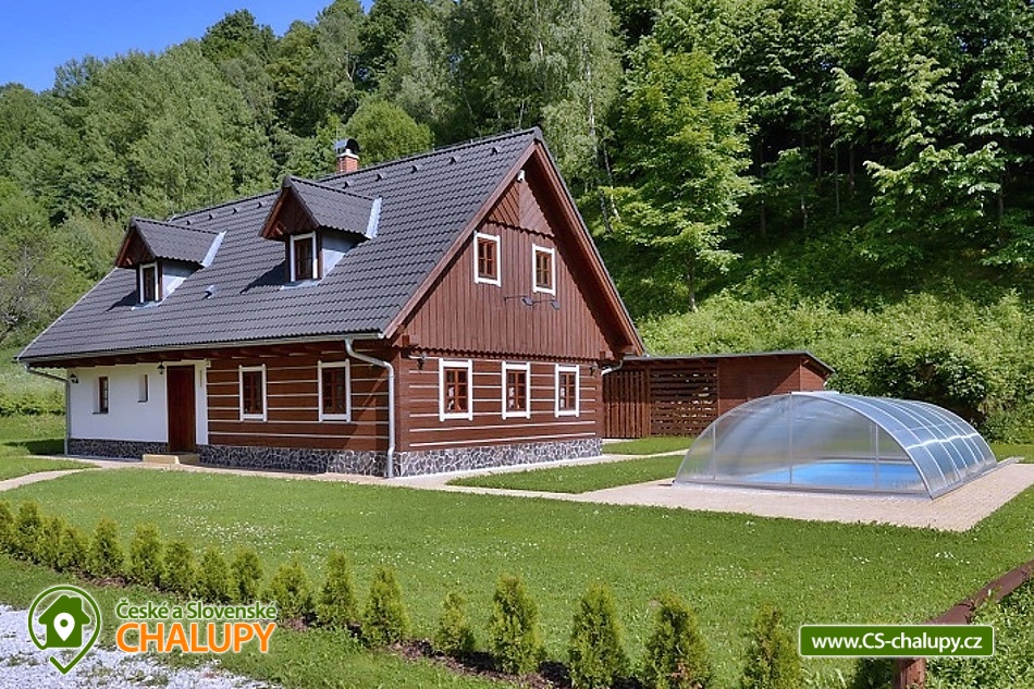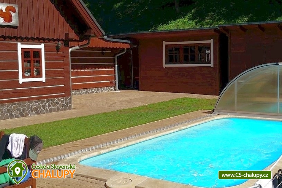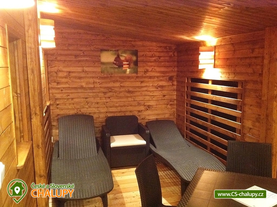 Wellness roubenka s venkovním bazénem v Krkonoších nedaleko Jánských Lázní a Černého Dolu v obci Rudník - Bolkov, okres Trutnov. Celoročně si můžete odpočinout od každodenních starostí v 13-lůžkové dřevěnici. Roubenka se pronajímá pouze jedné skupině hostů. V jejím přízemí je světnice (společenská místnost) s kachlovými kamny a TV se satelitním příjmem. Ve světnici je také kuchyňský kout (el. trouba, sklokeramická deska, mikrovlnná trouba, rychlovarná konvice, myčka nádobí, rychlovarná konvice, topinkovač, el. kráječ, rohový dřez, kuch. nádobí a lednice s mrazákem). Po pravé straně místnosti je toaleta a schodiště do patra. K dispozici máme tři apartmány. Apartmán č.1 je bezbariérový a nachází se v přízemí. Jeho kapacita jsou 2 pevná lůžka a rozkládací gauč pro dvě osoby. Zbývající dva Apartmány č.2 a č.3 jsou v patře. Oba apartmány mají 2 ložnice. Apartmán č. 2 je 5-lůžkový (dva lůžka v jedné ložnici, tři v druhé) a Apartmán č.3 je 4-lůžkový (2 lůžka v každé ložnici). V apartmánech je televizor se satelitním příjmem, koupelna s vanou a toaletou. Všude je bezplatné WiFi připojení na internet. K dispozici je soukromé wellness - infrasauna, koupací káď, vířivka, relax zóna. U chalupy je během léta k dispozici vyhřívaný bazén (6 x 3 x 1,2 m) a posezení pod zastřešeným přístřeškem, gril a ohniště. Děti se zabaví na houpačce, trampolíně, skluzavce, v pískovišti i dětském koutku uvnitř. K využijí je také pinpongový stůl a hřiště na volejbal apod.. Prostory na uskladnění lyží s vysoušečem bot i prostor na odložení kol. Dvě dětské postýlky a dvě dětské jídelní židličky. Parkování přímo u objektu. Nabídka aktivit v okolí: cyklistika i turistika, rozhledna Zlatá vyhlídka, Stezka korunami stromů. Dále Hrad a zámek Trutnov či Hrad Pecka. Aquapark v Janských Lázních a Aquapark Špindlerův Mlýn. V zimě Skiresort Černý Důl a Skiresort Pec pod Sněžkou. Těšíme se na Vás u nás.