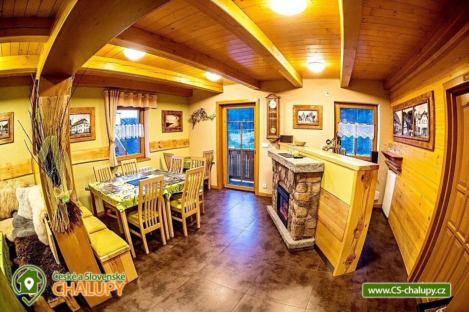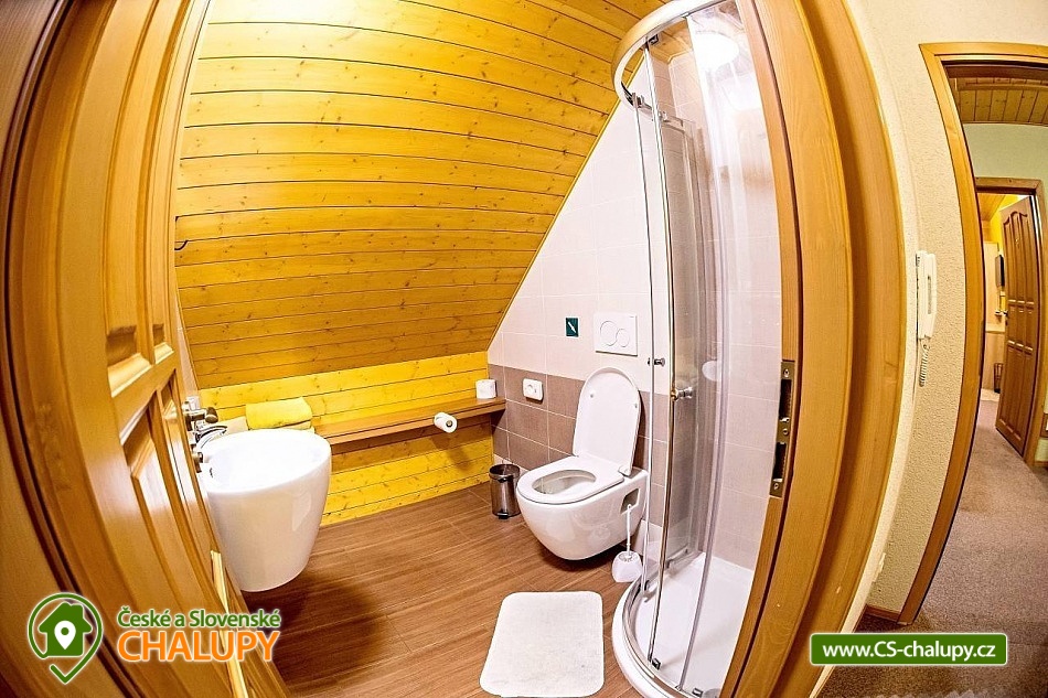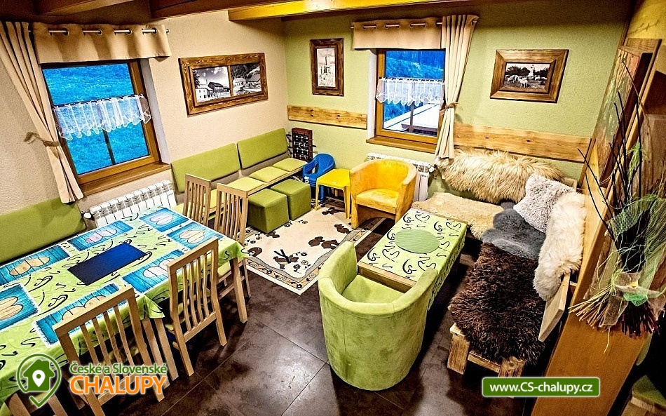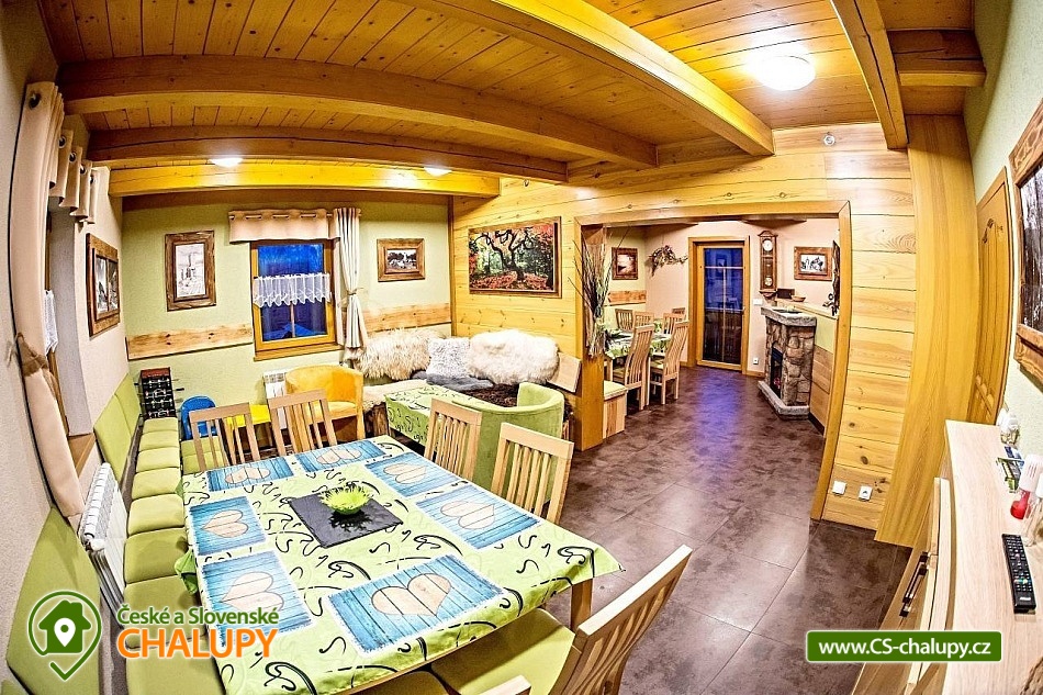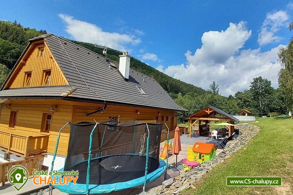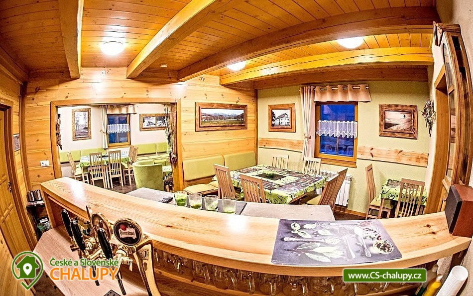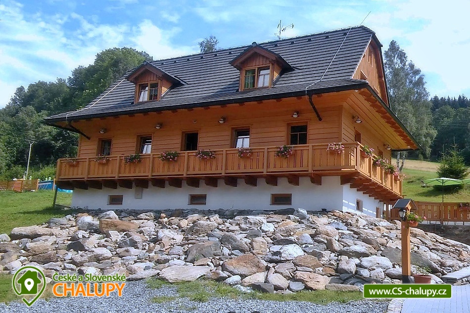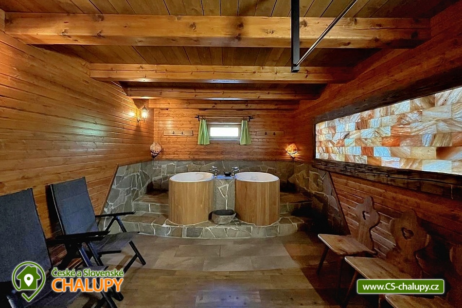 Wellness roubenka s bazénem uprostřed krásné přírody na úpatí Hrubého Jeseníku. Údolí v CHKO Jeseníky obklopují vrcholy Břidličné, Mravenečníku a Dlouhých Strání, protéká jím říčka Merta a nejvyšším bodem území je Jelení hřbet s nadmořskou výškou 1367 m. Chalupa k pronajmutí poskytuje ubytování pro až 20 osob v 7 ložnicích. POPIS - Suterén: wellness - sauny, vířivka, koupací kádě, vyhřívané lůžko. Přízemí: kuchyně, jídelna, společenská místnost, dětský koutek, 1x3 lůžkový pokoj. 1.patro: 2x3 lůžkový pokoj, 1x4 lůžkový pokoj, 1x apartmán 7 lůžek ve 3 ložnicích (2 v podkroví) - tento apartmán má jeden pokoj průchozí do podkroví s dvěma menšími pokojíky vhodnými především k přespání a neposkytuje plně soukromí pro více rodin. Kuchyň je prostorná, plně vybavená, nechybí sklokeramická deska, el. trouba, mikrovlnná trouba, fritéza, myčka nádobí, dva dřezy, koše na tříděný odpad, el. kráječ, mixér, topinkovač, toastovač, 3 lednice včetně mrazáku, 3 rychlovarné konvice, kvalitní nože, příbory, nádobí, nerez hrnce, termomísy, ... a nemusíte vozit cukr, mouku, sůl, pepř + základní koření, nachystáme Vám utěrky, houbičky i jar. Jídelna s dveřmi na terasu plnou venkovního posezení, výhledem a vůní lesa, masivním barem s výčepem, bytelné židle TON z ohýbaného buku. Sociální zařízení: Celkem 5x koupelna, 7x WC, každý pokoj s vlastním soc. zařízením - sprchový kout, WC, ručníky + osušky pro každé lůžko, mýdlo, fén. Vytápění: Bezobslužný provoz automatického kotle + kotel na dřevo, cena topení je zahrnuta v celkové ceně za pobyt. Dále: Venkovní bazén, slunečníky, ohniště, 2x gril, průlezky, stoly, lavice, křesla, lehátka, skiboxy, kolárna. Letní kuchyně ve velkém přístřešku s terasou a zázemím pro příjemný pobyt pod širým nebem, vybavená dřezem s teplou vodou, varnou deskou a lednicí. Eellness v suterénu chalupy s dvěma nezávislými vchody - pro ubytované hosty a obsluhu wellness. Součástí jsou 2 sauny, 2 koupací kádě, vířivka, vyhřívané lůžko, solná stěna. Po celou dobu pobytu je zaručena čistota, hygiena, výměna osušek, prostěradel a dek. Wellness je určený pouze pro hosty tohoto objektu a sousedního objektu 2M-336 stejného majitele. V létě Jeseníky otevřou své poklady všem: příroda, památky, lázně, technické unikáty, kultura, sport, odpočinek. Doporučujeme Termály Velké Losiny - nový Therme park s léčivou vodou, 9 bazénu uvnitř i venku. V zimě na lyžích ze sjezdovky až k chalupě - to je lyžovačka ve skiareálu Brněnka (200 m skibusem ke sjezdovce a dolů po urolbované cestě až k chalupě - pohodová atmosféra). Těšíme se na Vás u nás.