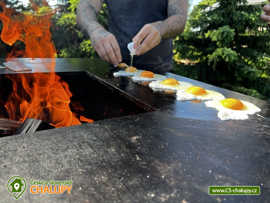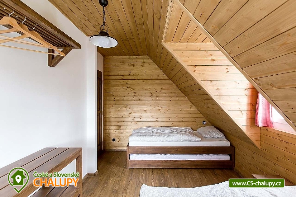Wellness roubenka s bazénem - Kralický Sněžník. Pronájem stylové roubenky pro až 14 osob se luxusním wellness (vyhřívaný venkovní bazén s protiproudem a jeho součástí je vířivka + finská sauna a koupací sud). Roubenka poskytuje ubytování pro až 14 osob ve 4 ložnicích. Roubenka v tradiční architektuře horských chalup s moderním vybavením. POPIS: 3 pokoje v podkroví (na každém pokoji 1x dvoulůžko a 2x jednolůžko) a 1 pokoj v přízemí (1x dvoulůžko). V pokojích jsou věšáky na ramínka a policový úložný systém. Vlastní vaření v plně vybavené kuchyni. Kuchyň je vybavena sklokeramickou varnou deskou, el. troubou, lednicí (330 l), myčkou, mikrovlnou troubou, toustovačem, topinkovačem, mixérem, dostatečným množstvím nádobí. Další vybavení: TV, WiFi v celé chalupě, Bluetooth reproduktor Marshall, elektrický vysoušeč obuvi na 10 párů bot, pračka, mraznička (80 l), fén. Sociální zařízení - Přízemí: koupelna společně se sprchovým koutem a toaletou. Podkroví: koupelna společně se sprchovým koutem a toaleta odděleně. Vytápění: Elektrické podlahové topení, kanadská litinová kamna na dřevo, elektrické topné žebříky v koupelnách. Parkování: 4 parkovací místa na pozemku, v zimním období doporučujeme sněhové řetězy. Na pozemku u chalupy je uzamykatelná lyžárna/kolárna (možnost uskladnění až 14 kol), terasa se zahradním nábytkem, venkovní posezení s otevřeným ohništěm + gril na dřevěné uhlí, houpačka pro děti, wellness (sauna + koupací sud). Blízké okolí - výlety: Kralický Sněžník, Malý Sněžník, Vlaštovčí skály - chráněné bizarní skály a kamenné moře, Prudký potok - kaskády, Jízdárna Černý kůň - Staré Město, Aktivity park Krupá - Staré Město, Dolní Morava - Stezka v oblacích, Mamutíkuv vodní park - Adrenalin park - bobová dráha - dětský Fun park - půjčovna Segway - Single trails, Branná - zřícenina hradu Kolštejn, Hanušovice - Pivovarnické muzeum, V Hynčicích - jízda na koních, rybolov v místním rybníku, půjčovna - kol, elektrokol, lyží. Dále Přečerpávací elektrárna Dlouhé Stráně, Rejvíz Mechové jezírko, Kouty nad Desnou - letní lyžování + minikáry, Velké Losiny - zámek, Ruční papírny, Medvědí jeskyně (Polsko - Kletno) a Králíky - pevnost. Těšíme se na Vás u nás.