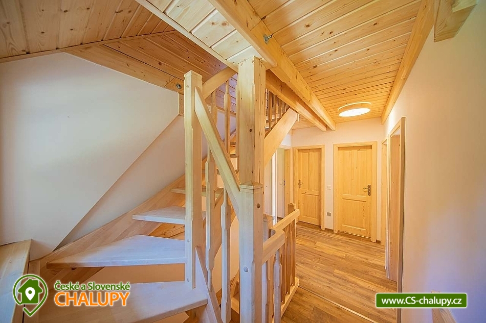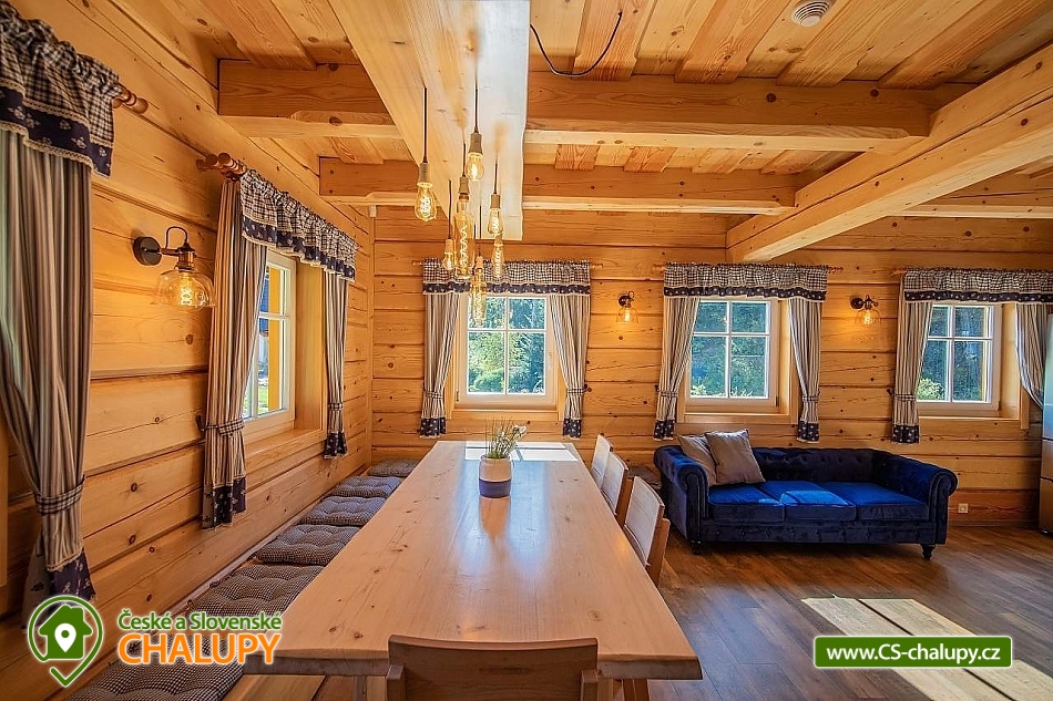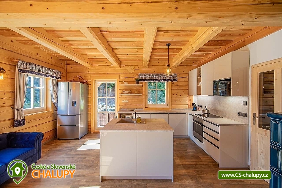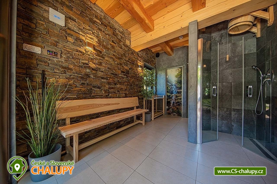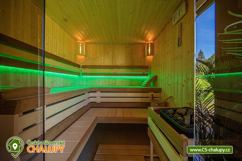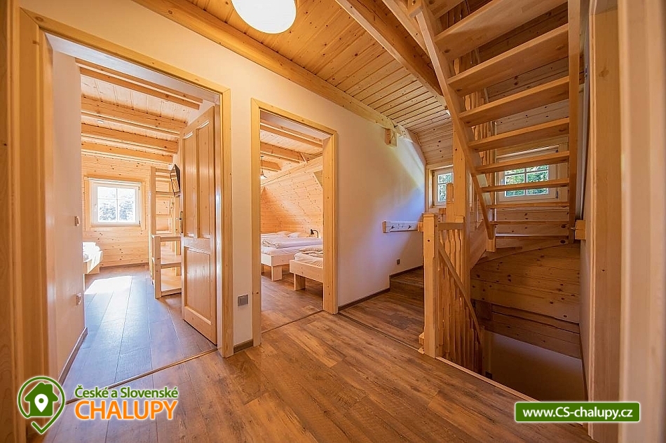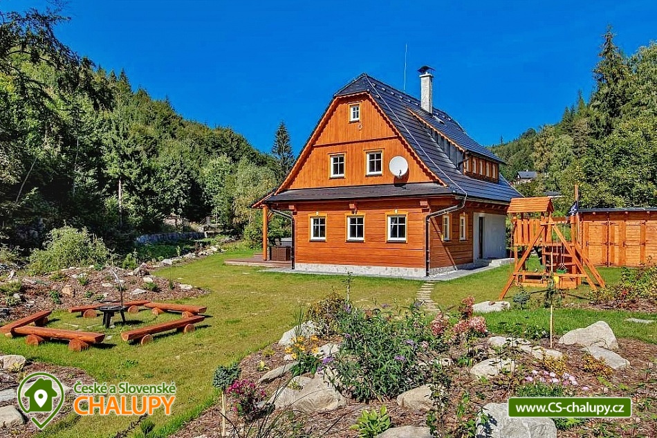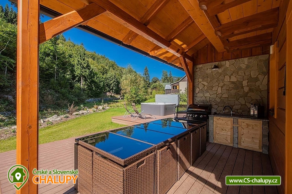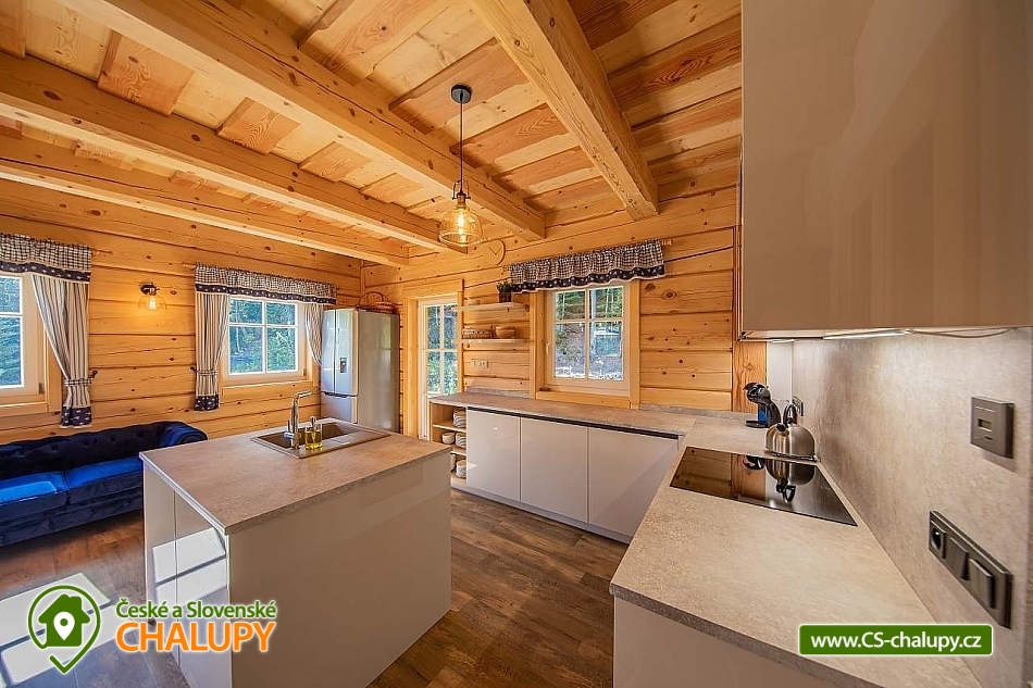 Wellness roubenka u říčky Desná v srdci Jeseníků na klidném místě, poloha 10 km od lázeňského města Velké Losiny, kde se nachází nově vybudované termální koupaliště. Poloroubená chalupa s velkou zahradou a vlastním wellness (finská sauna a hydromasážní wirpool pro 6 osob). Chalupa poskytuje ubytování pro až 16 osob v 6 ložnicích. V přízemí objektu se nachází společenská místnost s velkými kachlovými kamny, kuchyně, posezení a satelitní TV, dále lyžárna s vysoušečem na boty, wellness s finskou saunou a ochlazovacím vědrem, na terase vířivka pro 6 osob, 2x WC a sprcha. V 1. patře jsou 4 pokoje: 2x pokoj pro dvě osoby (s manželskou postelí), 1x pokoj pro tři osoby (jedna manželská postel a jedna samostatná), 1x pokoj pro čtyři osoby (manželská postel a dvě oddělené postele) a 2x koupelna s WC. V podkroví: 1x pokoj pro dvě osoby (oddělené postele), 1x pokoj pro tři osoby (velká spojená postel). V každém z pokojů se nachází smart TV s příjmem satelitních programů a internetem. Sociální zařízení: Celkově se v objektu nachází 4 x WC a tři sprchové kouty. Vytápění: V celé chatě nainstalováno elektrické podlahové topení, popř. lze celá chata vytopit kachlovými kamny. V kuchyni je veškeré běžné vybavení (pečící a mikrovlnná trouba, velká americká lednice s mrazákem, velká myčka nádobí, indukční varná deska, kávovar na kapsle Dolce Gusto, kontaktní gril (toastovač), dále běžně používané nádobí a kuchyňské vybavení. Posezení na venkovní terase a možnost grilování, k dispozici je výčepní zařízení (možnost vlastní sud piva nebo se dá zakoupit v nedalekém obchodě). Za roubenkou protéká řeka Hučivá Desná, její neustálý šum Vám pomůže se u nás odreagovat a dobít energii. Přímo v obci je letní lyžování a speciální dráha na horských minikárách. Výlety: jeskyně Na Pomezí, ve Velkých Losinách zámek s žerotínskou obrazárnou a muzeum ruční výroby papíru, dřevěný kostelík v Maršíkově, sedačková lanovka v Koutech nad Desnou - je v provozu i v létě, v Přemyslově, v Ramzové, přečerpávací vodní nádrž Dlouhé Stráně, Veterán muzeum a ZOO park v Rapotíně. V zimě k dispozici v obci 3 SKI areály, nejbližší je 500 m od chalupy (noční lyžování, umělé zasněžování, nový SKI areál K3: šesti sedačková lanovka), 7 vleků na Červenohorském sedle, kde je rovněž sedačková lanovka. Z Koutů vede kyvadlová autobusová doprava. Dále 7 km Thermal park: velikost vodních ploch 1 495 m². Ve vnitřní části návštěvníci najdou tři bazény (jeden s průplavem ven), dětské brouzdaliště, tobogán a whirlpool. Těšíme se na Vás u nás.