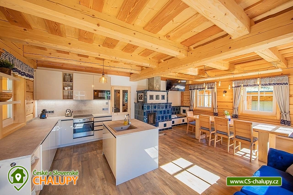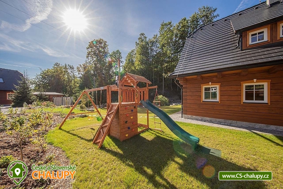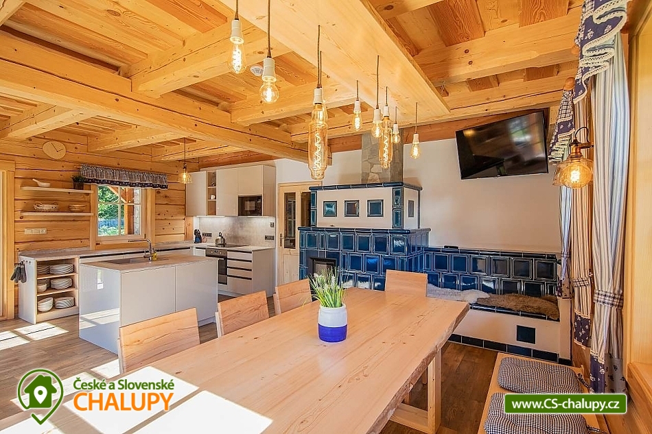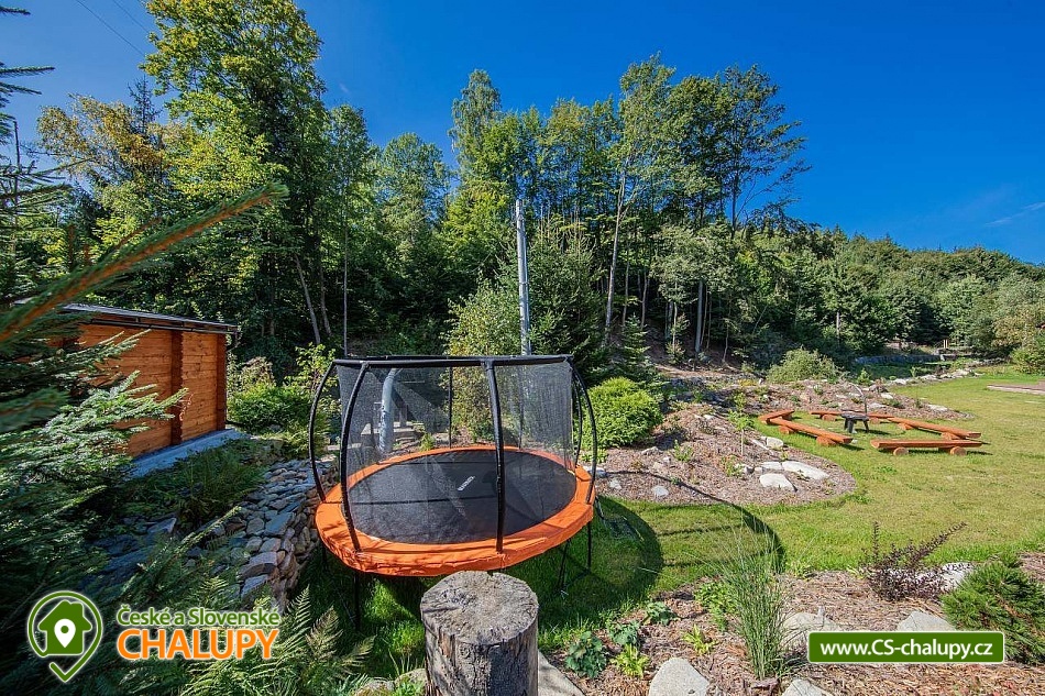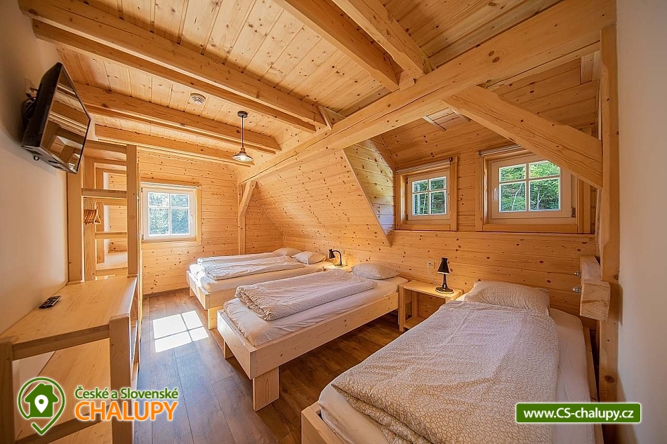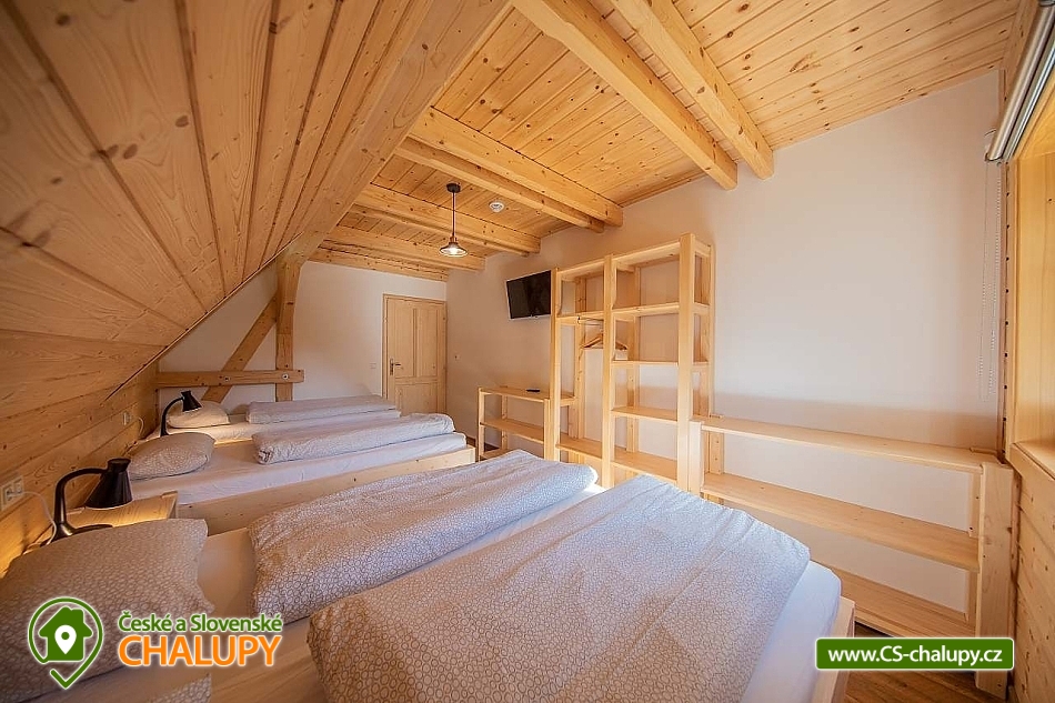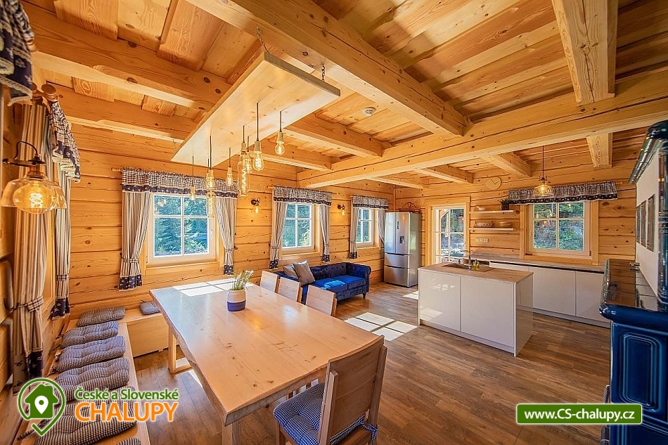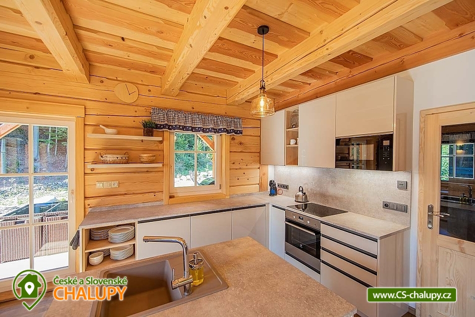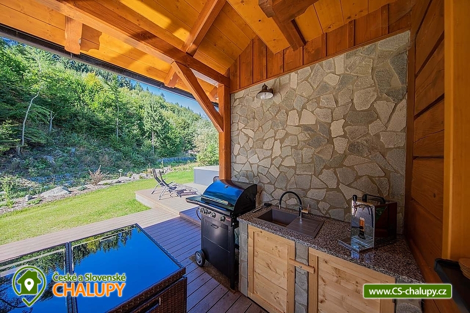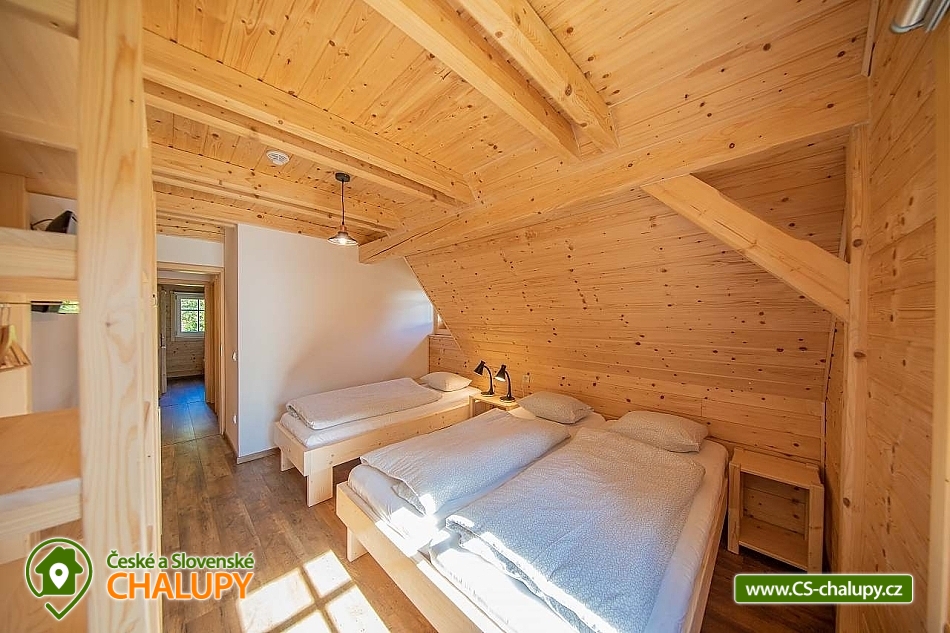 Wellness roubenka u říčky Desná v srdci Jeseníků na klidném místě, poloha 10 km od lázeňského města Velké Losiny, kde se nachází nově vybudované termální koupaliště. Poloroubená chalupa s velkou zahradou a vlastním wellness (finská sauna a hydromasážní wirpool pro 6 osob). Chalupa poskytuje ubytování pro až 16 osob v 6 ložnicích. V přízemí objektu se nachází společenská místnost s velkými kachlovými kamny, kuchyně, posezení a satelitní TV, dále lyžárna s vysoušečem na boty, wellness s finskou saunou a ochlazovacím vědrem, na terase vířivka pro 6 osob, 2x WC a sprcha. V 1. patře jsou 4 pokoje: 2x pokoj pro dvě osoby (s manželskou postelí), 1x pokoj pro tři osoby (jedna manželská postel a jedna samostatná), 1x pokoj pro čtyři osoby (manželská postel a dvě oddělené postele) a 2x koupelna s WC. V podkroví: 1x pokoj pro dvě osoby (oddělené postele), 1x pokoj pro tři osoby (velká spojená postel). V každém z pokojů se nachází smart TV s příjmem satelitních programů a internetem. Sociální zařízení: Celkově se v objektu nachází 4 x WC a tři sprchové kouty. Vytápění: V celé chatě nainstalováno elektrické podlahové topení, popř. lze celá chata vytopit kachlovými kamny. V kuchyni je veškeré běžné vybavení (pečící a mikrovlnná trouba, velká americká lednice s mrazákem, velká myčka nádobí, indukční varná deska, kávovar na kapsle Dolce Gusto, kontaktní gril (toastovač), dále běžně používané nádobí a kuchyňské vybavení. Posezení na venkovní terase a možnost grilování, k dispozici je výčepní zařízení (možnost vlastní sud piva nebo se dá zakoupit v nedalekém obchodě). Za roubenkou protéká řeka Hučivá Desná, její neustálý šum Vám pomůže se u nás odreagovat a dobít energii. Přímo v obci je letní lyžování a speciální dráha na horských minikárách. Výlety: jeskyně Na Pomezí, ve Velkých Losinách zámek s žerotínskou obrazárnou a muzeum ruční výroby papíru, dřevěný kostelík v Maršíkově, sedačková lanovka v Koutech nad Desnou - je v provozu i v létě, v Přemyslově, v Ramzové, přečerpávací vodní nádrž Dlouhé Stráně, Veterán muzeum a ZOO park v Rapotíně. V zimě k dispozici v obci 3 SKI areály, nejbližší je 500 m od chalupy (noční lyžování, umělé zasněžování, nový SKI areál K3: šesti sedačková lanovka), 7 vleků na Červenohorském sedle, kde je rovněž sedačková lanovka. Z Koutů vede kyvadlová autobusová doprava. Dále 7 km Thermal park: velikost vodních ploch 1 495 m². Ve vnitřní části návštěvníci najdou tři bazény (jeden s průplavem ven), dětské brouzdaliště, tobogán a whirlpool. Těšíme se na Vás u nás.