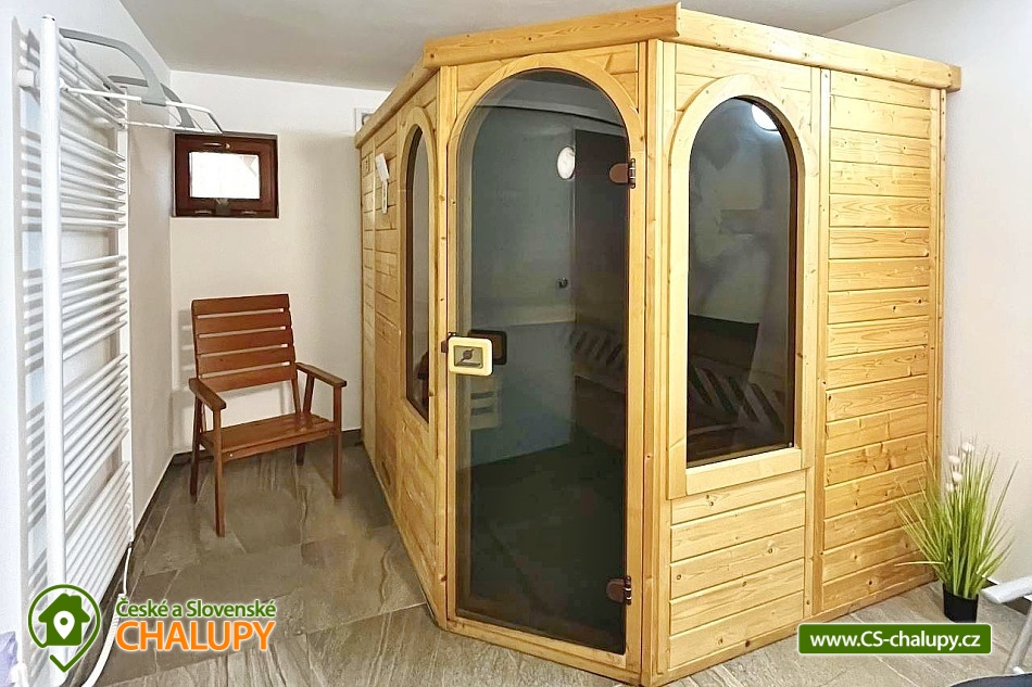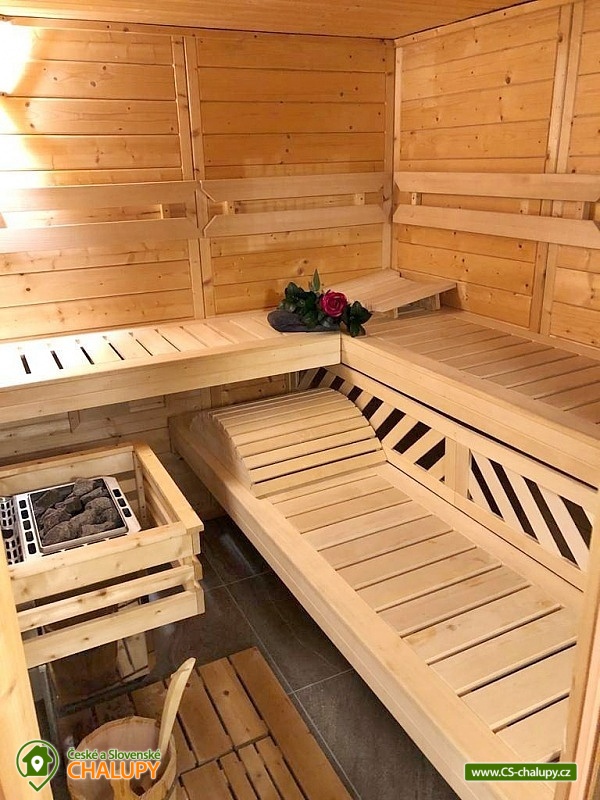 Wellness srub v lese s luxusní finskou saunou a vířivkou se nachází v krásné přírodě Jeseníků v Klepáčově, části obce Sobotín. Poloha nedaleko měst Rýmařov a Šumperk. Nabízí ubytování pro až 10 osob ve 4 ložnicích. Dvě ložnice jsou dvoulůžkové (vždy s jedním dvoulůžkem), jedna ložnice třílůžková (palanda a rozkládací pohovka pro 1 osobu) a poslední ložnice také třílůžková (jednolůžko a rozkládací pohovka pro 2 osoby). Možnost zapůjčení dětské postýlky. Povlečení a ručníky nutno dovést vlastní, případně půjčit za poplatek. K dispozici je obývací pokoj s velkou pohovkou, TV, krbovými kamny a navazující plně vybavená kuchyň s jídelním stolem (nádobí, lednice, mrazák, mikrovlnná trouba, myčka, varná deska s el. troubou, rychlovarná konvice, toustovač a kávovar na zrnkovou kávu). Sociální zařízení zahrnuje dvě koupelny se sprchovým koutem a samostatné WC. K dispozci Wi-Fi připojení. Objekt je vytápěn centrálním krbem a elektrickými kamny v přízemí v obývací místnosti. Možnost využití elektrického topení v každé z místností. Parkování v lese u objektu pro tři auta. Pro relax je pro Vás připravena wellness zóna s posezením, finskou saunou a vířivkou. Srub má velký balkón s krásným výhledem do přírody a také prostornou zastřešenou terasu s posezením a grilem. Na zahradě je k dispozici ohniště a dětské hřiště se skluzavkou, houpačkami a pískoviště. Okolí srubu je ideální pro turistiku, cykloturistiku, houbaření, lyžování a běžkování. Nedaleko jsou také tenisové kurty a minigolf. Tipy na výlety: Řešovské vodopády, hrad Sovinec, termální lázně Velké Losiny, nejvyšší vrch Jeseníků - Praděd, Karlova studánka, vodní elektrárna Dlouhé stráně, zámek Velké Losiny a Muzeum papíru Velké Losiny, Muzeum rapotínské sklárny. Možnosti koupání: termální koupaliště Velké Losiny, přehrada Krásné, koupaliště Rapotín, Velké Losiny - termály, bazén Šumperk - Aquacentrum. V zimním období je možné využít několik blízkých i vzdálenějších lyžařských areálů a běžkařských tras, např.: skiareál Klepáčov, Sobotín, Hraběšice, Vernířovice a lyžařské stopy Skřítek nebo Traťovka. Těšíme se na Vás u nás.